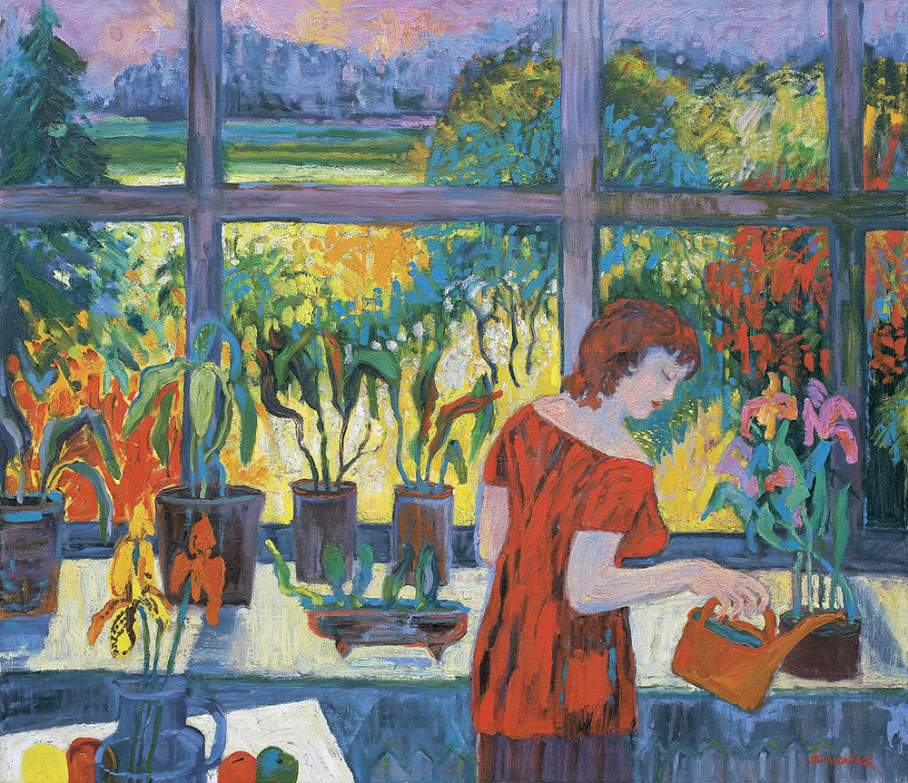 Jan Szancenbach (Kraków 1928 - Kraków 1998) studiował w latach 1940-1942 w Kunstgewerbeschule (czyli ASP zdegradowanej przez okupanta do roli szkoły zawodowej) pod kierunkiem m.in. Stanisława Kamockiego, Józefa Mehoffera, Andrzeja Jurkiewicza. Po zamknięciu uczelni, w latach 1942-1945 pracował zarobkowo i samodzielnie studiował. W 1945 został przyjęty ponownie na II rok studiów, które ukończył pod kierunkiem Eugeniusza Eibischa w 1948 (dyplom uzyskał w 1952). Od 1948 pracował jako asystent w macierzystej pracowni oraz w pracowni liternictwa i projektowania graficznego Ludwika Gardowskiego. Przeszedł wszystkie szczeble kariery akademickiej, od asystenta do profesora zwyczajnego (od 1986). Od 1972 prowadził własną katedrę na Wydziale Malarstwa. W latach 1987-1993 przez dwie kadencje był rektorem ASP w Krakowie. Jako malarz pozostawał wierny szkole koloryzmu polskiego, którego zasady przyswoił sobie w trakcie studiów u Eibischa. Jego malarstwo jest pełne światła i nasyconych barw, radosne, wręcz feeryczne. Obok wybitnych walorów kolorystycznych (zwłaszcza w czerwieniach malarz osiągał niezwykłą skalę odmian i odcieni) nie stroni od dekoratywizmu, co razem składa się na hedonistyczny, beztroski wyraz. Znany przede wszystkim jako twórca martwych natur, pejzaży, scen w ogrodach, Szancenbach zajmował się również malarstwem monumentalnym. Pracował m. in. przy renowacji Teatru im. Słowackiego w Krakowie oraz widowni i plafonu Opery we Wrocławiu. Innym wątkiem jego sztuki było projektowanie graficzne (znaki firmowe, plakaty, okładki, opakowania, etykiety, znaczki pocztowe itp.), zajmował się również ilustracją książkową i filmem rysunkowym.