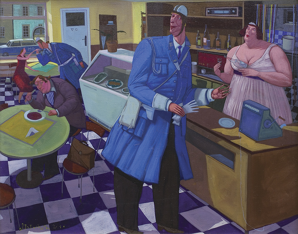 Jacek Pałucha (Częstochowa 1966, mieszka w Częstochowie) studiował na Wydziale Malarstwa ASP w Warszawie, uzyskując w 1993 dyplom w pracowni prof. Wiesława Szamborskiego. Równolegle był założycielem i liderem zespołów: "Formacja Nieżywych Schabuff", "Furmanka", "Superpałka i najeźdźcy z kosmosu", autorem tekstów i muzyki ich piosenek. Projektował również okładki i oprawę graficzną płyt i wydawnictw dla wyżej wymienionych zespołów, a także m. in. dla "Kultu". Jest autorem ilustracji do książki Grażyny Treli "Dobry mężczyzna to martwy mężczyzna". Grał główną rolę w filmie Łukasza Wylężałka "Balanga". Wystawia od 1993 w kraju i za granicą. Stylistyka i tematyka jego obrazów, zbliżona typem humoru do twórczości Jerzego Dudy-Gracza, zjednała mu popularność wśród zwolenników sztuki przedstawiającej, anegdotycznej i prześmiewczej wobec przywar współczesnego człowieka.
