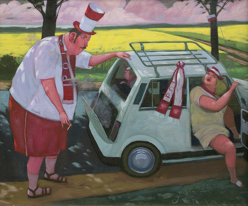 Jacek Pałucha (Częstochowa 1966, mieszka w Częstochowie) studiował na Wydziale Malarstwa ASP w Warszawie, uzyskując w 1993 dyplom w pracowni prof. Wiesława Szamborskiego. Równolegle był założycielem i liderem zespołów: "Formacja Nieżywych Schabuff", "Furmanka", "Superpałka i najeźdźcy z kosmosu", autorem tekstów i muzyki ich piosenek. Projektował również okładki i oprawę graficzną płyt i wydawnictw dla wyżej wymienionych zespołów, a także m. in. dla "Kultu". Jest autorem ilustracji do książki Grażyny Treli "Dobry mężczyzna to martwy mężczyzna". Grał główną rolę w filmie Łukasza Wylężałka "Balanga". Wystawia od 1993 w kraju i za granicą. Stylistyka i tematyka jego obrazów, zbliżona typem humoru do twórczości Jerzego Dudy-Gracza, zjednała mu popularność wśród zwolenników sztuki przedstawiającej, anegdotycznej i prześmiewczej wobec przywar współczesnego człowieka.