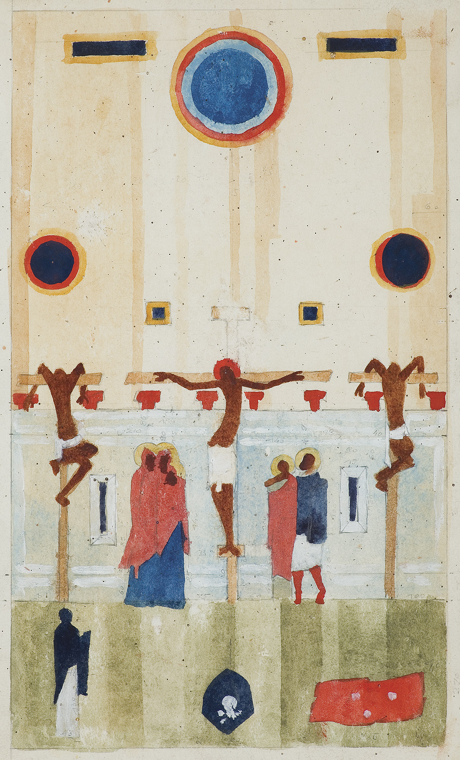 Jerzy Nowosielski (Kraków 1923 - Kraków 2011) w 1940 zaczął studia w Kunstgewerbeschule w Krakowie. W 1942 przebywał przez niecały rok w Ławrze św. Jana Chrzciciela pod Lwowem. Studiował tam sztukę malowania i historię ikon. Po powrocie do Krakowa w 1943 nawiązał ponowne kontakty z kręgiem przyszłej Grupy Krakowskiej. Po wojnie kontynuował studia w ASP w Krakowie pod kierunkiem prof. Eugeniusza Eibischa (1945-1947). Na I Wystawie Sztuki Nowoczesnej w Krakowie w 1948/49 pokazał obrazy utrzymane w nurcie abstrakcji geometrycznej. W latach socrealizmu nie wystawiał, zajmując się w tym czasie scenografią oraz malowaniem cerkwi i kościołów. W 1955 w Łodzi zaprezentował swą pierwszą wystawę indywidualną, w 1956 wziął udział w XXVIII Biennale w Wenecji. W latach 1957-1962 był pedagogiem w Państwowej Wyższej Szkole Sztuk Plastycznych w Łodzi, następnie w Akademii krakowskiej, gdzie wykładał na Wydziale Malarstwa do przejścia na emeryturę w 1993. W drugiej połowie lat 50. osiągnął charakterystyczny styl aktów, pejzaży i scen figuralnych we wnętrzach, który zawdzięczał swej fascynacji ikoną i doświadczeniom z malarstwem sakralnym. W 1976 podjął na nowo realizacje monumentalne, wykonując m.in. malowidła ścienne, stacje Drogi Krzyżowej i projekty witraży w kościele Opatrzności Bożej w Wesołej pod Warszawą (1976-1979). Artysta powszechnie uznawany był za autorytet w dziedzinie sztuki zakorzenionej w wartościach duchowych.