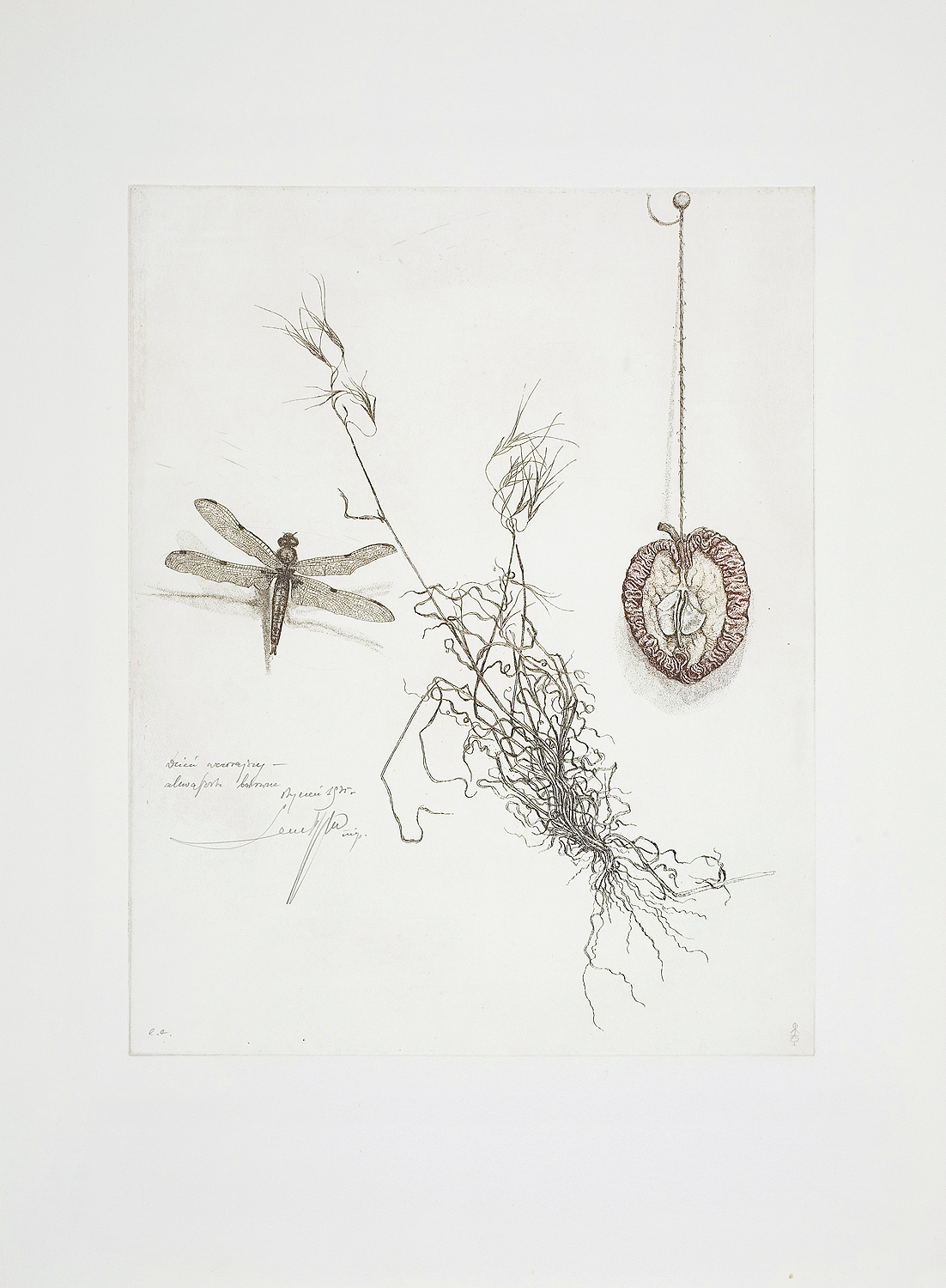 Leszek Rózga (Zgierz 1924 - Łódź 2015) - artysta grafik. W latach 1940-1945 przebywał na robotach w Niemczech, gdzie po zakończeniu wojny pracował w teatrze amatorskim i uczył się prywatnie malarstwa (1945-1947). Studiował w Państwowej Wyższej Szkole Sztuk Plastycznych w Łodzi (1948-1951) i na Wydziale Grafiki Propagandowej w Katowicach - filii ASP w Krakowie, gdzie obronił dyplom w 1954. W latach 1967-1994 był wykładowcą (od 1979 profesorem) w uczelni łódzkiej, gdzie stworzył szkołę metaforycznej, ekspresyjnej sztuki graficznej. Brał udział w licznych wystawach w kraju i za granicą, zdobywając często nagrody. Był również laureatem wielu nagród państwowych, resortowych, regionalnych itp., jak: Nagrody Ministra Kultury i Sztuki I st. 1981, 1986, 1994, Nagroda Woj. Łódzkiego 1972, Nagroda Miasta Łodzi 1985. Działał w ZPAP, był m. in. członkiem Rady Artystycznej Zarządu Głównego 1974-1976. Początkowo zajmował się głównie malarstwem, rysunkiem i monotypią, tworząc nastrojowe widoki miejskie. Od 1960 skupił się na grafice warsztatowej (głównie w technikach metalowych). W latach 70. wprowadzał do swych kompozycji werystycznie odwzorowane rośliny i owoce, inskrypcje, cytaty ze sztuki klasycznej.