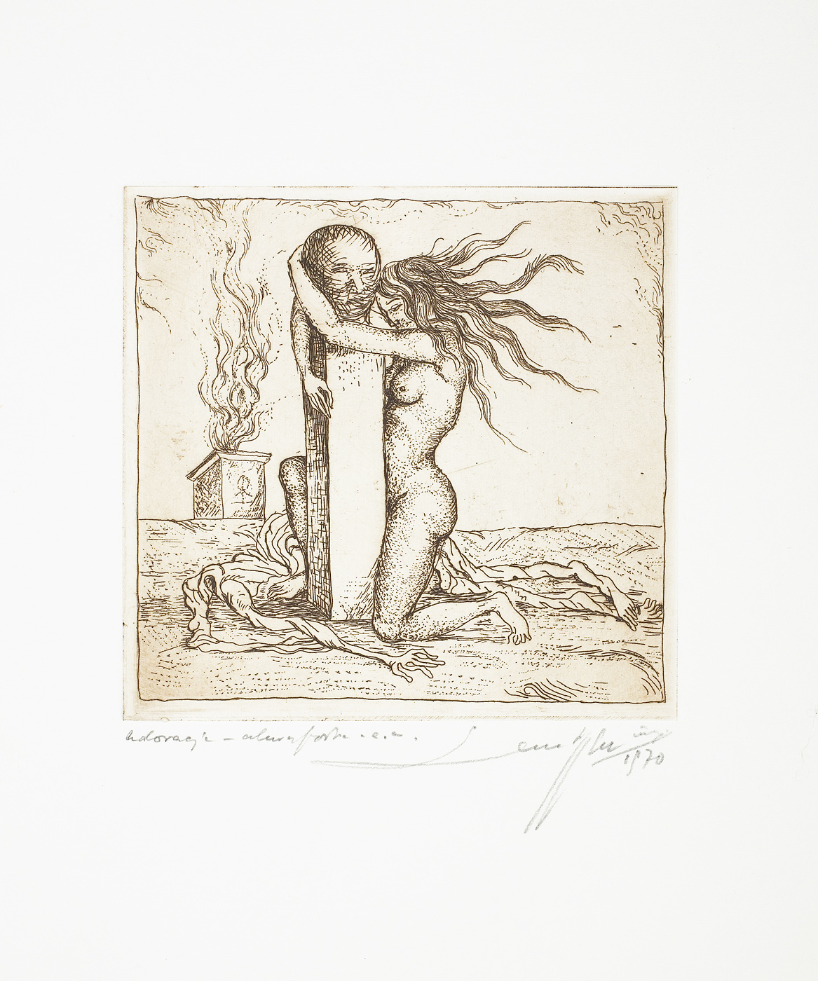 Leszek Rózga (Zgierz 1924 - Łódź 2015) - artysta grafik. W latach 1940-1945 przebywał na robotach w Niemczech, gdzie po zakończeniu wojny pracował w teatrze amatorskim i uczył się prywatnie malarstwa (1945-1947). Studiował w Państwowej Wyższej Szkole Sztuk Plastycznych w Łodzi (1948-1951) i na Wydziale Grafiki Propagandowej w Katowicach - filii ASP w Krakowie, gdzie obronił dyplom w 1954. W latach 1967-1994 był wykładowcą (od 1979 profesorem) w uczelni łódzkiej, gdzie stworzył szkołę metaforycznej, ekspresyjnej sztuki graficznej. Brał udział w licznych wystawach w kraju i za granicą, zdobywając często nagrody. Był również laureatem wielu nagród państwowych, resortowych, regionalnych itp., jak: Nagrody Ministra Kultury i Sztuki I st. 1981, 1986, 1994, Nagroda Woj. Łódzkiego 1972, Nagroda Miasta Łodzi 1985. Działał w ZPAP, był m. in. członkiem Rady Artystycznej Zarządu Głównego 1974-1976. Początkowo zajmował się głównie malarstwem, rysunkiem i monotypią, tworząc nastrojowe widoki miejskie. Od 1960 skupił się na grafice warsztatowej (głównie w technikach metalowych). W latach 70. wprowadzał do swych kompozycji werystycznie odwzorowane rośliny i owoce, inskrypcje, cytaty ze sztuki klasycznej.