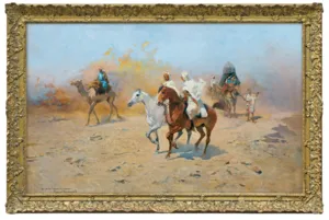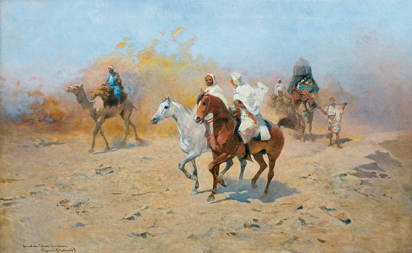 Tadeusz Ajdukiewicz (Bochnia 1851 - Kraków 1916) był artystą związanym z mecenatem arystokracji i dworów panujących; w tych kręgach zrobił prawdziwą karierę, a jego obrazy podobały się powszechnie. Studia malarskie rozpoczął w krakowskiej Szkole Sztuk Pięknych. Później kształcił się jeszcze w Wiedniu oraz w Monachium - w Akademii i w pracowni Józefa Brandta. Po studiach przez kilka lat jeździł po polskich dworach kresowych i malował portrety. Około 1877 wyjechał do Paryża, skąd, wraz z Władysławem Branickim wyjechał w – ważną dla jego przyszłej twórczości – podróż na Bliski Wschód. Około roku 1882 zamieszkał w Wiedniu, zajął pracownię po Hansie Makarcie (zm. 1884), malując dla dworu cesarskiego i arystokracji. W 1893 bawił w Londynie, gdzie, m.in. portretował księcia Walii, w 1894 pracował na dworze sułtańskim w Konstantynopolu, następnie także w Sofii, Petersburgu i Bukareszcie. W Rumunii osiadł na dłużej jako malarz nadworny Karola I. Po wybuchu I wojny światowej powrócił do kraju i, mimo starszego wieku, zaciągnął się do Legionów. Zmarł, nie wytrzymawszy trudów wojennych. Malował przede wszystkim portrety - zarówno reprezentacyjne, efektowne i eleganckie (Portret Heleny Modrzejewskiej, MNK), jak również skromne i kameralne. Tworzył też sceny myśliwskie, obrazy o tematyce wschodniej, bohaterskie sceny bitewne, rewie i przeglądy wojsk (Przegląd armii rumuńskiej, 1896).