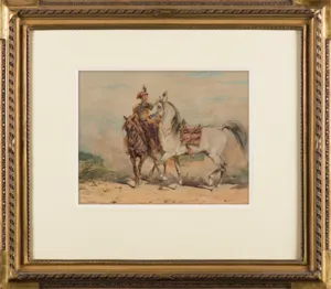 Juliusz Kossak (Wiśnicz 1824 - Kraków 1899) - malarz i ilustrator - był jednym z najpopularniejszych artystów polskich 2. połowy XIX wieku. Naukę rysunku i malarstwa rozpoczął we lwowskiej pracowni Jana Maszkowskiego; później wiele rysował z natury odwiedzając majątki szlacheckie na Ukrainie, Podolu i Wołyniu. W roku 1852 był w Wiedniu, na Węgrzech i w Petersburgu, a następnie zamieszkał na stałe w Warszawie. Lata 1856-1860 spędził w Paryżu, gdzie przyjaźnił się z Horacem Vernetem. Powróciwszy do Warszawy w latach 1862-1868 był kierownikiem artystycznym „Tygodnika Ilustrowanego”. W roku 1869 przeniósł się na stałe do Krakowa, skąd wyjeżdżał jeszcze do Monachium, by malować w atelier batalisty Franza Adama. Kossak był przede wszystkim znakomitym akwarelistą; rzadziej posługiwał się techniką olejną. Malował obrazy historyczne i batalistyczne, sceny rodzajowe ilustrujące życie i tradycje dworu szlacheckiego oraz obyczaje polskiego ludu. Ale prawdziwymi bohaterami jego obrazów były konie, których ruch, temperament, charakter i indywidualność potrafił po mistrzowsku przedstawić. Był także autorem wielu ilustracji do czasopism i książek, trafiającym bezbłędnie tak w klimat utworów literackich, jak i w tęsknoty i potrzeby odbiorców - czytelników Pieśni o ziemi naszej Wincentego Pola, Trylogii Henryka Sienkiewicza, Pana Tadeusza i poematów Adama Mickiewicza.