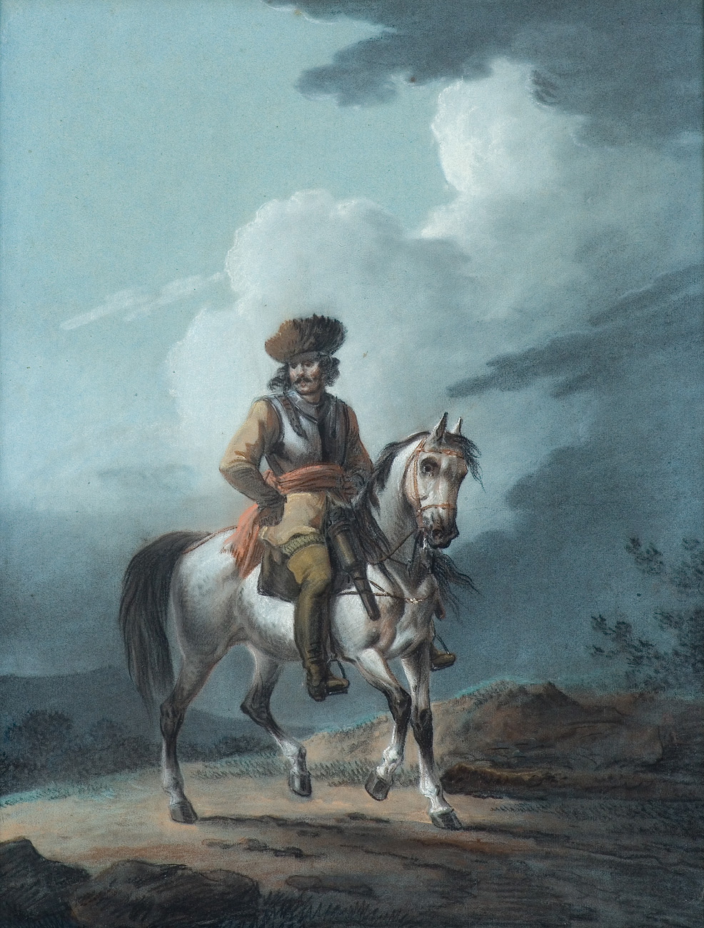 Aleksander Orłowski (Warszawa 1777 – Petersburg 1832) - malarz, rysownik i grafik. Protegowany księżnej Izabelli Czartoryskiej, w latach 1793-1801 kształcił się w pracowni J. P. Norblina, który wywarł zasadniczy wpływ na całą jego późniejszą twórczość. Dorywczo uczył się także w zamkowej „malarni” M. Bacciarellego, u miniaturzysty W. de Lesseura i sztycharza B. Folino. Brał udział w powstaniu kościuszkowskim. Okresowo pracował dla ks. Józefa Poniatowskiego i dla ks. Heleny Radziwiłłowej. W roku 1802 wyjechał na Litwę, a stamtąd do Petersburga, gdzie zamieszkał na stałe, zyskując wkrótce ogromną popularność. Został nadwornym rysownikiem wielkiego księcia Konstantego, pracował też dla cesarza Aleksandra I. W roku 1809 otrzymał tytuł akademika petersburskiej Akademii Sztuk Pięknych. Był przede wszystkim rysownikiem, chętnie malował też pastelami i olejno. Tematyka jego prac była różnorodna: tworzył sceny batalistyczne, rysował i malował wschodnich jeźdźców, charakterystyczne typy ludowe, sceny z życia wsi, pejzaże, portrety i karykatury. Od 1816 zajmował się litografią, popularyzując tę technikę na terenie Rosji. Był wybitną postacią polskiej kolonii artystycznej w Petersburgu. Z podziwem pisał o Orłowskim Aleksander Puszkin, odnajdujący w jego sztuce cechy bliskie własnym, romantycznym ideałom, a zaprzyjaźniony z nim Adam Mickiewicz w „Panu Tadeuszu” kilka wierszy poświęcił „naszemu malarzowi Orłowskiemu”, który mimo, że „życie strawił w Peterburku | Sławny malarz (mam jego kilka szkiców w biurku),| Mieszkał tuż przy cesarzu, na dworze, jak w raju,| A nie uwierzy Hrabia, jak tęsknił po kraju,| Lubił ciągle wspominać swej młodości czasy,| Wysławiał wszystko w Polszcze: ziemię, niebo, lasy...”