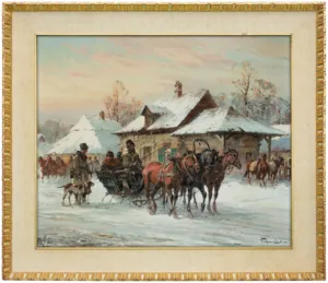Władysław Chmieliński (Warszawa 1911 - Warszawa 1979) był malarzem związanym z Warszawą, gdzie stale mieszkał i pracował. W latach 1926-1931 studiował w warszawskiej Miejskiej Szkole Sztuk Zdobniczych i Malarstwa (dawna Klasa Rysunkowa). Wiodącym tematem jego obrazów były widoki miejskie, malowane olejno i akwarelą. W latach 1935-1938 stworzył cykl akwarel przedstawiających obiekty polskiej architektury; wśród nich, widoki Sandomierza, Krakowa, Kazimierza nad Wisłą, a także wnętrza zabytkowych kościołów czy pałaców, m.in. Zamku Królewskiego w Warszawie i Pałacu w Wilanowie. Malował także pejzaże i wiejskie sceny rodzajowe – kuligi, sanny, zaprzęgi, wesela, konie na tle krajobrazu. W latach 1967-1969 wyjeżdżał na dłuższe pobyty do Danii. W latach 1936-1939 artysta używał także pseudonimu „Władysław Stachowicz”.