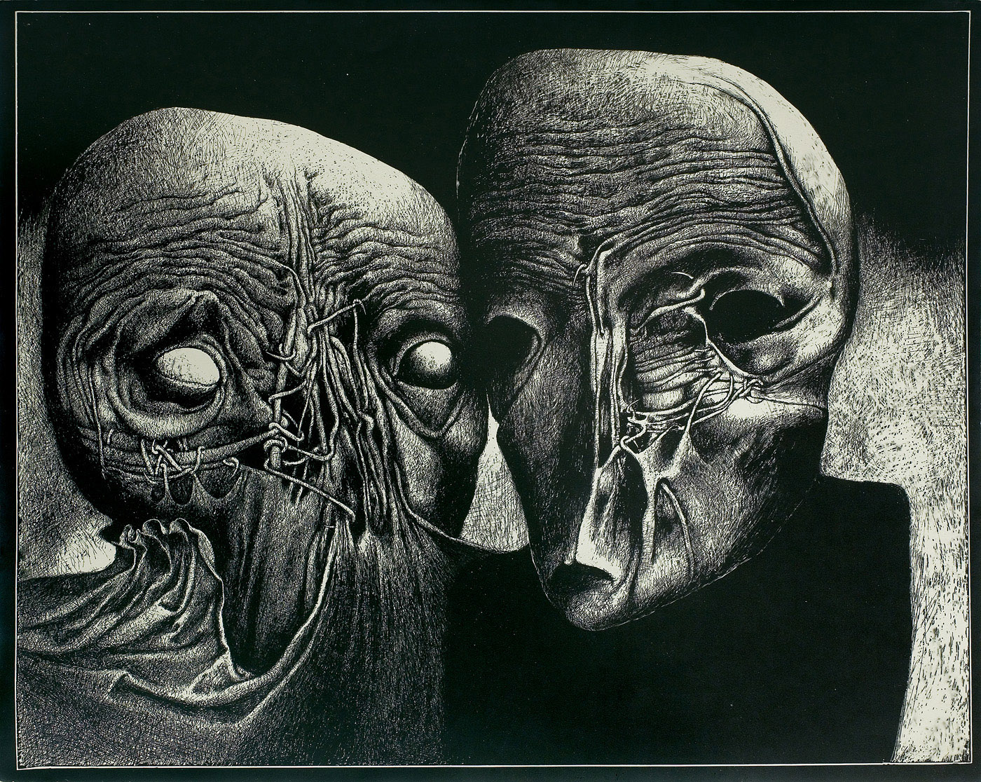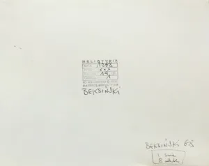 Zdzisław Beksiński (Sanok 24 II 1929 - Warszawa 21 II 2005) studiował w latach 1947-1952 na Wydziale Architektury Politechniki Krakowskiej. Był artystą samoukiem, który osiągnął niekwestionowaną pozycję w polskiej sztuce współczesnej, potwierdzoną obecnością jego prac na prestiżowych wystawach i w kolekcjach muzealnych. Początkowo zajmował się fotografią, którą interesował się od lat studenckich, po 1956 zyskując uznanie jako twórca fotogramów o estetyce opartej o efekty fakturowe. W latach 1958-1962 tworzył abstrakcyjne obrazy-reliefy o bogatej fakturze, głównie metalowe, będące odmianą malarstwa materii. Pod koniec tego okresu powstawały ażurowe formy o kształtach figur i pełnoplastyczne rzeźby w metalu. Kolejnym etapem jego twórczości były lata 1962-1974, kiedy poświęcał się głównie rysunkowi. W latach 60. rysował piórkiem i tuszem figuralne kompozycje odznaczające się karykaturalną deformacją postaci. Od końca lat 60. tworzył rysunki węglem i kredkami, będące monochromatyczną odmianą jego równoległej twórczości malarskiej. Od 1974 zajmował się niemal niepodzielnie malarstwem. Jego charakterystyczny styl bazował na perfekcji technicznej, której towarzyszyła niezwykłość wizji. Malował świat po katastrofie, naznaczony piętnem śmierci i rozpadu. Jego obrazy zaludniają postaci i stwory o ludzkich wprawdzie bądź zwierzęcych kształtach, lecz o cechach fantomów, automatów lub rozpadających się trucheł. Artysta nie nadawał swym obrazom i rysunkom tytułów (poza porządkującymi symbolami), akcentując w ten sposób swój brak zainteresowania dla literackiej strony przedstawień. Sam mówił, że malując całkowicie poddaje się wizji, „fotografuje“ ją. W ostatnich latach włączył do swego warsztatu artystycznego elektroniczne techniki generowania obrazu, które wykorzystywał do tworzenia komputerowych fotomontaży. Sztuka Beksińskiego, wielokrotnie wystawiana i omawiana, budzi skrajne emocje wśród znawców i publiczności.