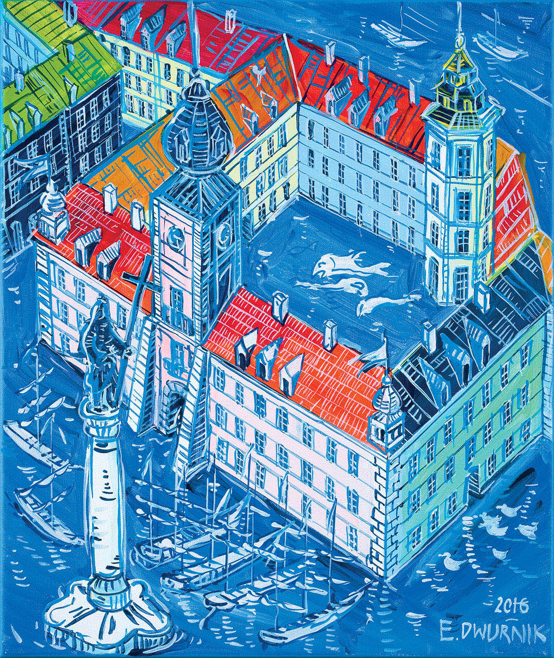 Edward Dwurnik (Radzymin 19 IV 1943 - Warszawa 28 X 2018) studiował malarstwo w ASP w Warszawie (1963-1970), jednak jako swego „mistrza“ wymienia Nikifora. Jego to prace, zobaczone po raz pierwszy w 1965, zainspirowały ówczesnego studenta III roku do narysowania pierwszych prac z cyklu „Podróże autostopem“, które kontynuował w nastepnych latach. W 1972-1978 powstawał cykl „Sportowcy“, w którym portretowane były, dodajmy - kąśliwie, typowe postaci z lat 70. Równolegle od 1975 powstawał cykl „Robotnicy“, który kulminował w okresie „Solidarności“ 1980-1981. Za prace z tego cyklu Dwurnik otrzymał w 1981 Nagrodę Krytyki Artystycznej im. Cypriana Kamila Norwida, natomiast za obrazy z cyklu „Warszawa“ (1981), proroczo zapowiadające stan wojenny - Nagrodę Kulturalną „Solidarności“ podziemnej w 1983. W latach 80. malarstwo Dwurnika przybrało wyraz ekspresyjny i dramatyczny. Powstające w tej dekadzie obrazy miały niejednokrotnie wymowę polityczną, przybierały też kostium historyczny, tak czy inaczej odnoszący się do współczesnych spraw i realiów. Cykl „Droga na Wschód“ (1989-91) upamiętniał ofiary stalinizmu, natomiast cykl „Od Grudnia do Czerwca“ (1990-94) - ofiary stanu wojennego. Zarówno ideowe, jak i czysto malarskie walory tych prac przyniosły artyście ogromne uznanie, zarówno w kraju jak i za granicą. Jego wyrazem była prestiżowa nagroda Fundacji Coutts & Co w Zurychu (1992). W latach 90. powstają cykle będące kontynuacją „Podróży autostopem“: „Niebieskie miasta“ (od 1993) i „Diagonale“ (od 1996), jak również kompozycje nowego typu, jak widoki morskie (cykl „Błękitne“, 1992-93) czy cykl „Wyliczanka“ (1996-99). Artysta wiele wystawia, miał ok. 100 wystaw indywidualnych w Polsce i za granicą, brał też udział w licznych wystawach i festiwalach krajowych i międzynarodowych, m.in.: X Biennale Sztuki Współczesnej, Menton 1974, Documenta 7, Kassel 1982, 5th Biennale, Sydney 1985, XIX Biennale Sztuki, Sao Paulo 1987; Olimpiada Sztuki, Seul 1988. Równolegle z malarstwem uprawiał rysunek, collage, grafikę warsztatową (litografia, techniki metalowe, kserografia, stemple) i użytkową (ilustracja, plakaty do własnych wystaw indywidualnych).