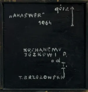 Tadeusz Brzozowski (Lwów 1918 - Rzym 1987) - od 1936 studiował malarstwo w Akademii Sztuk Pięknych w Krakowie, w latach 1940-1942 kontynuując naukę w Kunstgewerbeschule, powstałej w miejsce Akademii. W czasie okupacji związany był z Teatrem Podziemnym Tadeusza Kantora - grał w Balladynie (1943) i główną rolę w Powrocie Odysa (1944). W tym okresie zajmował się też konserwacją dzieł sztuki, co okazało się owocne dla jego własnej techniki malarskiej w przyszłości. W 1945 ostatecznie ukończył studia w krakowskiej ASP. Do 1948 wystawiał z Grupą Młodych Plastyków, uczestnicząc w najważniejszych wystawach młodego ruchu artystycznego, aż do narzucenia przez władze socrealizmu jako obowiązującego stylu obrazowania. W latach 1950-1955 nie uczestniczył w oficjalnym życiu artystycznym, zajmując się w tym czasie malowaniem polichromii kościelnych, konserwacją i nauczaniem rysunku na Wydziale Architektury Politechniki Krakowskiej (do 1954). W 1954 przeniósł się do Zakopanego, gdzie podjął pracę pedagogiczną w Szkole Kenara. Pracował w niej do 1969, w latach 1959-1961 jako dyrektor w Zakopanem mieszkał do końca życia. W tym okresie, w toku samodzielnych prób i doświadczeń stał się wirtuozem techniki malarskiej. Kolor, faktura, gra laserunków i walorów, cała „alchemia“ jaką stosował w swoich obrazach złożyły się na niepowtarzalne zjawisko malarstwa abstrakcyjnego, które zdolne było „opowiadać“ samą swą formą. W 1955 powrócił do udziału w wystawach, uczestnicząc w licznych pokazach w Polsce i za granicą, organizując też wiele wystaw indywidualnych. W 1957 wszedł w skład reaktywowanej Grupy Krakowskiej. Od 1958 współorganizował „Salony Marcowe“ w Zakopanem. W 1959 w Paryżu związał się z międzynarodowym ruchem „Phases“. W latach 1962-1979 był pedagogiem w Państwowej Wyższej Szkole Sztuk Plastycznych w Poznaniu (od 1977 profesorem), a w latach 1979-1981 profesorem ASP w Krakowie. Otrzymał wiele nagród i odznaczeń państwowych oraz m. in. nagrodę Fundacji im. Alfreda Jurzykowskiego (1983). Wśród retrospektyw artysty za jego życia wymienić należy wystawę w Muzeum Narodowym w Poznaniu (1974) i wystawę rysunków w Muzeum Okręgowym w Radomiu (1986). Wielka wystawa pośmiertna eksponowana była w Muzum Narodowym w Warszawie, a następnie w muzeach w Zakopanem, Wrocławiu i Krakowie w latach 1997-1998. Towarzyszył jej katalog oeuvre artysty w dziedzinie malarstwa i rysunku: Tadeusz Brzozowski 1918-1987, pod red. Anny Żakiewicz, Muzeum Narodowe, Warszawa 1997.