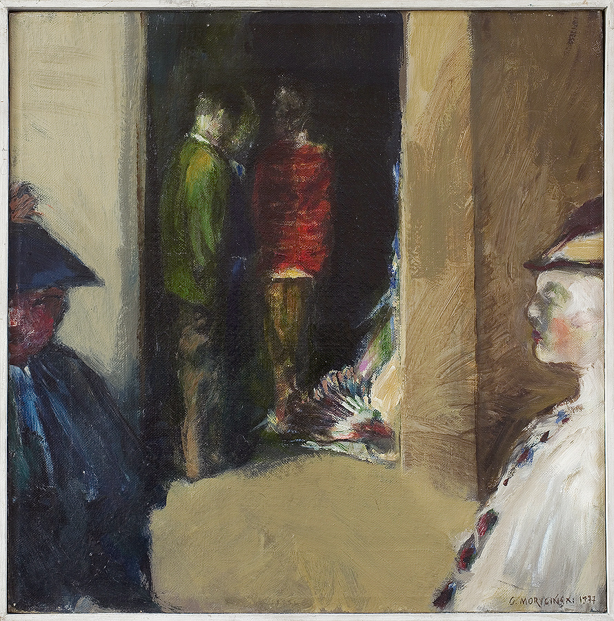 Grzegorz Moryciński (Augustów 1936 - Warszawa 2015) - studiował na Wydziale Malarstwa ASP w Warszawie pod kierunkiem profesorów Stanisława Szczepańskiego i Artura Nachta-Samborskiego, uzyskując dyplom u tego drugiego w 1961. Zajmował się malarstwem, rysunkiem, grafiką warsztatową (akwaforta, linoryt) i użytkową (plakat, grafika książkowa). Tworzył figuralne kompozycje, których forma wiele zawdzięcza tradycji kolorystycznej, w jakiej artysta został wykształcony. Pierwszą wystawę indywidualną miał w 1960; odtąd wielokrotnie wystawiał w kraju i za granicą. W okresie stanu wojennego uczestniczył w ruchu kultury niezależnej, wiele wystawiając w kościołach oraz na pokazach prywatnych (wystawa w pracowni Marii Anto, wspólnie z Jarosławem Modzelewskim, Warszawa 1983, wystawa zbiorowa w pracowni Urszuli Brzozowskiej-Strałeckiej, Warszawa 1984). Był też związany z kręgiem parafii Miłosierdzia Bożego na Żytniej. Zdobył liczne nagrody, m. in. wyróżnienia w Konkursie im. Jana Spychalskiego w 1973 i 1977, Nagrodę Stołecznej Rady Narodowej w 1968, nagrodę na wystawie „Bielska Jesień” w 1979, Nagrodę Komitetu Kultury Niezależnej „Solidarność” w 1988. W 1993 był stypendystą Fundacji Pollock-Krasner. Jego prace znajdują się w czołowych kolekcjach muzealnych w kraju oraz w wielu prywatnych w Polsce i za granicą.
