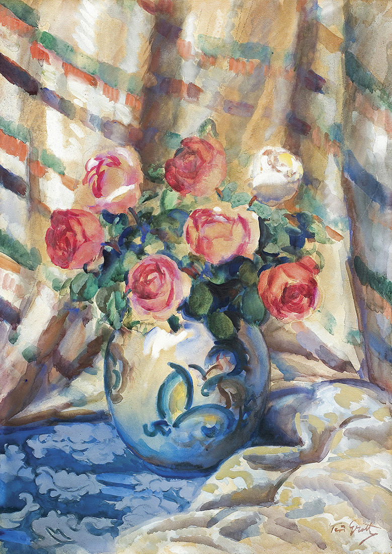 Teodor Grott (Częstochowa 1884 - Kraków 1972) - w latach 1903-1909 studiował w krakowskiej Akademii Sztuk Pięknych początkowo pod kierunkiem Floriana Cynka, później u Leona Wyczółkowskiego. W czasie studiów kilkakrotnie otrzymał medale za prace szkolne. Następnie kształcił się jeszcze w Paryżu, skąd wyjeżdżał do Brukseli i Londynu i podróżował do Włoch. Stale mieszkał w Krakowie, gdzie – począwszy od roku 1910 – wiele wystawiał w Towarzystwie Przyjaciół Sztuk Pięknych. Z czasem został członkiem honorowym Towarzystwa; od 1949 kierownikiem biura i organizatorem wystaw. Od roku 1912 należał także do Towarzystwa Artystów Polskich Sztuka. Malował pejzaże (m.in. tatrzańskie, z Ukrainy, Włoch, Francji), starą architekturę, kwiaty i martwe natury, portrety, akty. Najchętniej posługiwał się doskonale opanowaną techniką akwareli, ale malował także olejno. Zajmował się rzemiosłem artystycznym; wraz z żoną założył i prowadził w Krakowie wytwórnię kilimów.