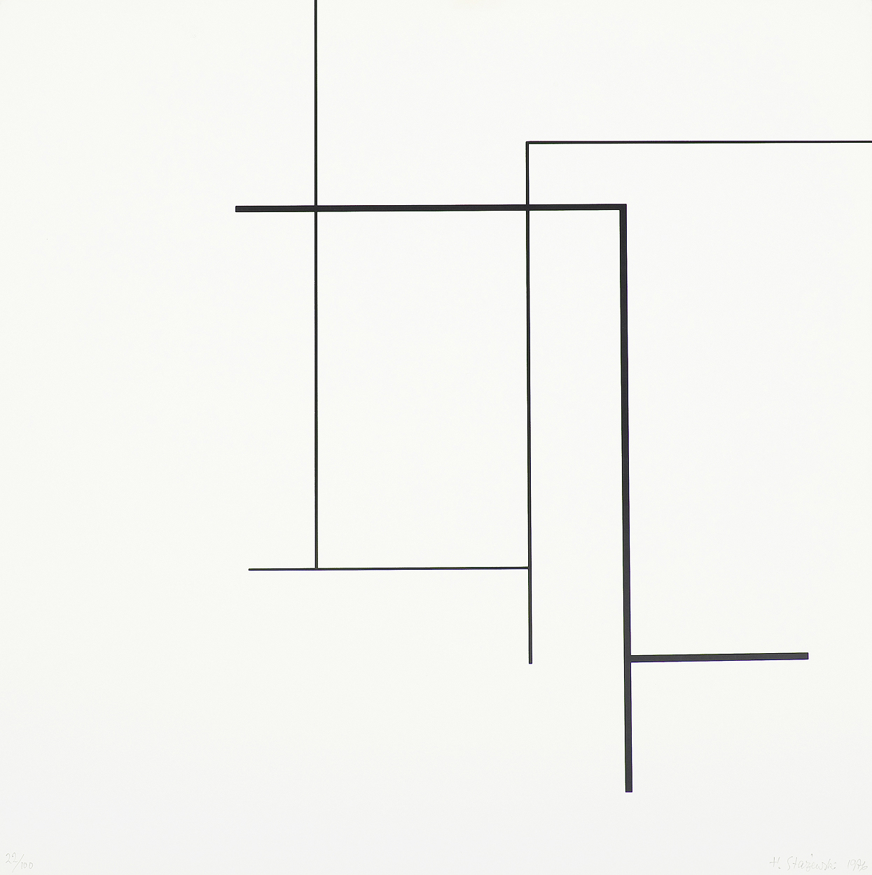 Henryk Stażewski (Warszawa 9 I 1894 - Warszawa 10 VI 1988) studiował w Szkole Sztuk Pięknych w Warszawie w latach 1913-1920. W początkach kariery malował martwe natury. Przejściowo wystawiał z ugrupowaniem „Formiści” (1922). Wziął też udział w Wystawie Nowej Sztuki w Wilnie w 1923. O tego czasu tworzył pod wpływem konstruktywizmu. Obok kompozycji malarskich trudnił się grafiką książkową, projektował wnętrza, sprzęty, a także scenografie – były to w większości prace teoretyczne i studyjne. Polskie i międzyna-rodowe ugrupowania awangardy, z którymi wystawiał i współpracował jako publicysta, to kolejno: „Blok” (1924-1926), „Praesens” (1926-1930), „Cercle et Carré” (1929-1931), „Abstraction-Création” (1931-1939), „a. r.” (1932-1939). Należał też do Koła Artystów Grafików Reklamowych (1933-1939). W 1930 był współorganizatorem zbiórki dzieł artystów międzynarodowej awangardy przeznaczonych dla muzeum łódzkiego (obecnie w Muzeum Sztuki w Łodzi). Po II wojnie mieszkał i działał w Warszawie. W latach 40. i 50. podejmował próby dostosowania się do postulatów sztuki figuratywnej. Z tego okresu pochodzą rysunkowe i malarskie kompozycje o tematyce pracy, budowy, a także projekty monumentalne. Po 1956, uznawany powszechnie za patrona polskiej awangardy, uprawiał już wyłącznie abstrakcję o konstruktywistycznym rodowodzie. Tworzył cykle prac, będących studiami płaszczyzn, linii, kolorów w różnych układach względem siebie. Przy pozorach chłodnej perfekcji umiał nasycić je emocją bezpośredniego dotknięcia, śladu ręki. Obok malarstwa i form pochodnych, jak collages, reliefy, multiple, tworzył formy przestrzenne i grafikę (autoryzował serigraficzne repliki swoich prac). Był laureatem wielu nagród i odznaczeń krajowych i zagranicznych, w tym Nagrody Herdera, Wiedeń 1972.