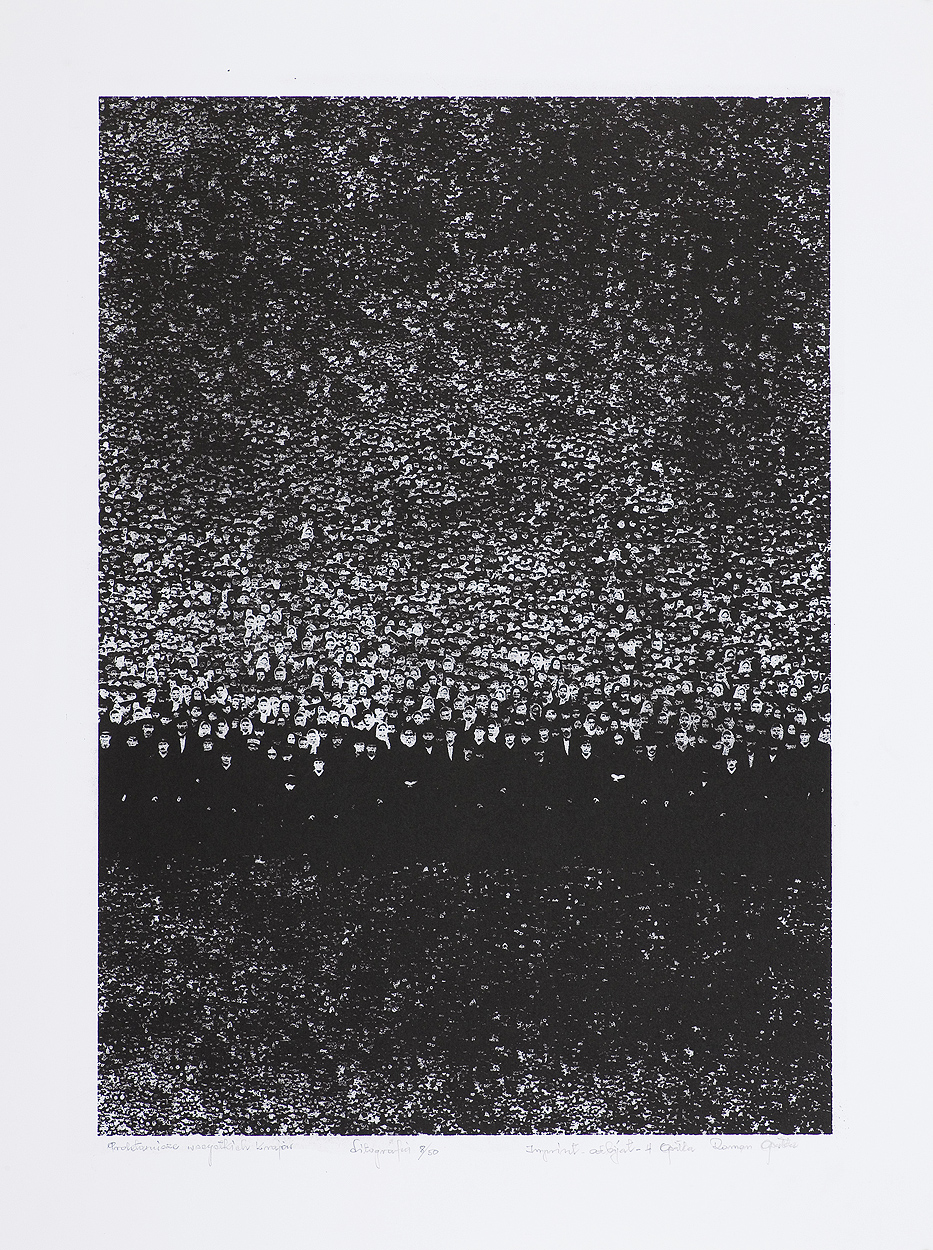 Roman Opałka (Abbéville, Francja 1931 - Rzym 2011) po przyjeździe wraz z rodziną do Polski uczył się w szkole poligraficznej w Nowej Rudzie, po czym podjął studia w Państwowej Wyższej Szkole Sztuk Plastycznych w Łodzi (1949-1950). Kontynuował je w ASP w Warszawie (1950-1956). We wczesnym okresie tworzył cykle malarskie i rysunkowe („Chronomy“, 1961-1963, „Fonematy“, 1963-1964, „Alfabet grecki“, 1965), obiekty przestrzenne („Poduszkowce“, „Integracje“, 1964-1966) oraz cykle graficzne i ilustracje. Od 1965 realizuje program „Obrazów liczonych 1-oo “, który jest projektem na całe życie, polegającym na zapełnianiu powierzchni obrazów kolejnymi liczbami. Już w trakcie realizacji tego programu, w 1965-67 i 1968-70 wykonał dwa cykle graficzne: poświęcony Rewolucji Październikowej (litografie barwne) i „Opisanie świata“ (kwasoryty), za który zdobył liczne nagrody na wystawach międzynarodowych. Od 1970 kontynuuje wyłącznie „Obrazy liczone“ w malarstwie („Detale“), rysunku („Kartki z podróży“) oraz rejestracjach fotograficznych, video i dźwiękowych. Od polowy lat 70. mieszka we Francji. Reprezentował Polskę na Biennale w Wenecji w 1995.