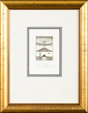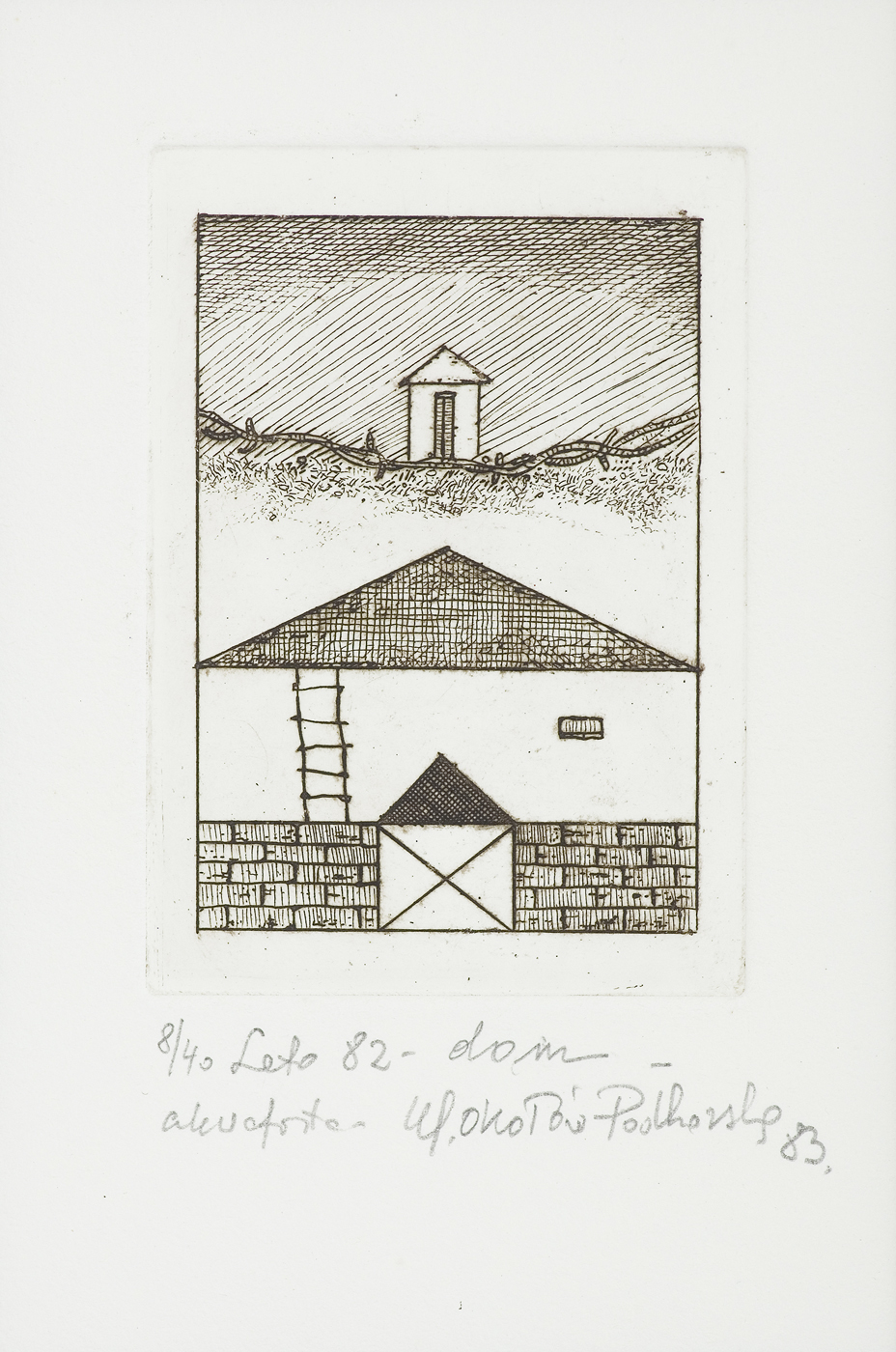 sygn. oł. pod ryc. 8/40 Lato 82- dom- | akwaforta - M. Okołow Podhorska 83.