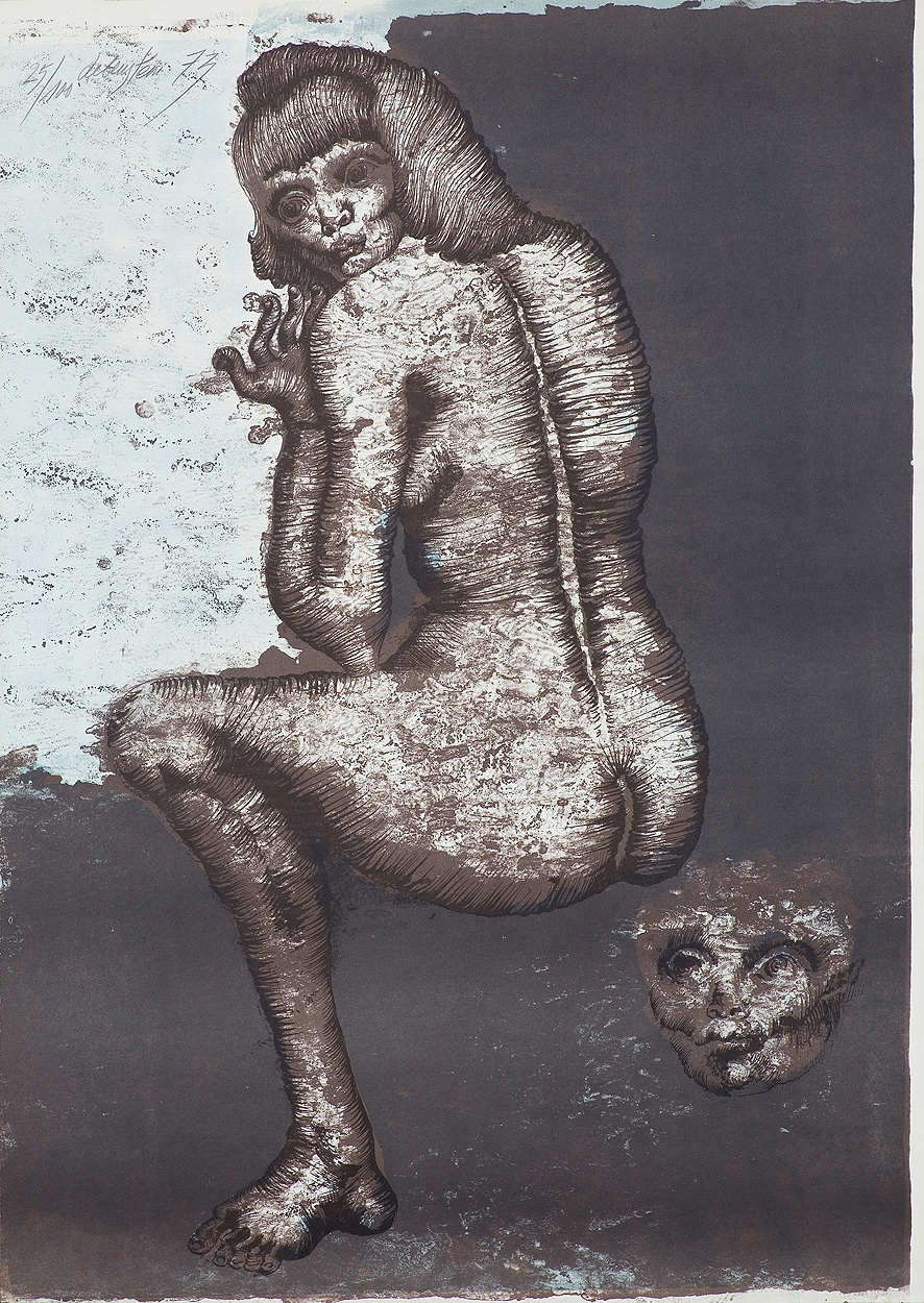 Jan Lebenstein (Brześć Litewski 1930 - Kraków 1999) w latach 1948-1954 studiował malarstwo w ASP w Warszawie pod kierunkiem prof. Eugeniusza Eibischa i Artura Nachta-Samborskiego. W 1955 wziął udział w wystawie w warszawskim Arsenale. Zaprzyjaźniony w czasie studiów z Mironem Białoszewskim, swą pierwszą wystawę indywidualną pokazał w 1956 w Teatrze na Tarczyńskiej. W 1959 zdobył Grand Prix de la Ville de Paris na I Biennale Młodych w Paryżu i w tym roku przeniósł się na stałe do Paryża. Po seriach "figur kreślonych" (na papierze milimetrowym) i "figur hieratycznych" z lat 1955-1958 maluje cykl "figur osiowych" (1958-1962), które wystawia w Paryżu i USA. Równolegle w 1960 zaczyna rysowane "karnety", rodzaj dziennika, który w przyszłości dostarczy motywów wykorzystanych w obrazach. W latach 1964-1965 maluje "Bestiarium", cykl fakturowych, archaizowanych stworów przypominających prehistoryczne wykopaliska. Bezpośrednio po nich wprowadza do swych obrazów postaci ludzkie i fantastyczne, odgrywające sceny ni to mitologiczne, ni to ze snu, często przesycone erotyką. W 1970 projektuje witraże dla Centre du Dialogue w Paryżu. W W 1971 otrzymuje obywatelstwo francuskie 1974 powstają gwasze inspirowane Folwarkiem zwierzęcym George'a Orwella. W latach 1976-1989 tworzy wyłącznie w technice gwaszu i pastelu, podejmując tematykę mitologiczną i zaczerpniętą z Biblii: cykle ilustracji do Księgi Hioba (wyd. 1979) i do Apokalipsy (wyd. 1986) w nowych przekładach Czesława Miłosza. W 1989 powraca do malarstwa olejnego (cykl "Pergamon"). Artysta otrzymał m. in. nagrodę Fundacji im. Alfreda Jurzykowskiego w 1976, Nagrodę Muzeum Archidiecezji Warszawskiej w 1985, Nagrodę im. Jana Cybisa w 1987.