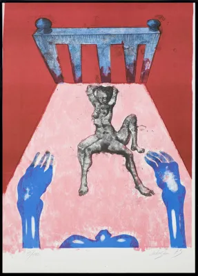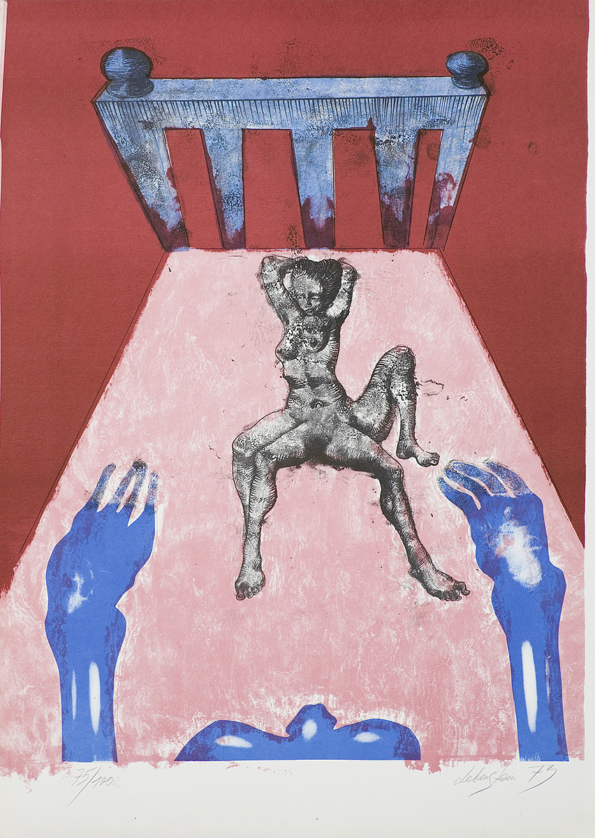 Jan Lebenstein (Brześć Litewski 1930 - Kraków 1999) w latach 1948-1954 studiował malarstwo w ASP w Warszawie pod kierunkiem prof. Eugeniusza Eibischa i Artura Nachta-Samborskiego. W 1955 wziął udział w wystawie w warszawskim Arsenale. Zaprzyjaźniony w czasie studiów z Mironem Białoszewskim, swą pierwszą wystawę indywidualną pokazał w 1956 w Teatrze na Tarczyńskiej. W 1959 zdobył Grand Prix de la Ville de Paris na I Biennale Młodych w Paryżu i w tym roku przeniósł się na stałe do Paryża. Po seriach "figur kreślonych" (na papierze milimetrowym) i "figur hieratycznych" z lat 1955-1958 maluje cykl "figur osiowych" (1958-1962), które wystawia w Paryżu i USA. Równolegle w 1960 zaczyna rysowane "karnety", rodzaj dziennika, który w przyszłości dostarczy motywów wykorzystanych w obrazach. W latach 1964-1965 maluje "Bestiarium", cykl fakturowych, archaizowanych stworów przypominających prehistoryczne wykopaliska. Bezpośrednio po nich wprowadza do swych obrazów postaci ludzkie i fantastyczne, odgrywające sceny ni to mitologiczne, ni to ze snu, często przesycone erotyką. W 1970 projektuje witraże dla Centre du Dialogue w Paryżu. W W 1971 otrzymuje obywatelstwo francuskie 1974 powstają gwasze inspirowane Folwarkiem zwierzęcym George'a Orwella. W latach 1976-1989 tworzy wyłącznie w technice gwaszu i pastelu, podejmując tematykę mitologiczną i zaczerpniętą z Biblii: cykle ilustracji do Księgi Hioba (wyd. 1979) i do Apokalipsy (wyd. 1986) w nowych przekładach Czesława Miłosza. W 1989 powraca do malarstwa olejnego (cykl "Pergamon"). Artysta otrzymał m. in. nagrodę Fundacji im. Alfreda Jurzykowskiego w 1976, Nagrodę Muzeum Archidiecezji Warszawskiej w 1985, Nagrodę im. Jana Cybisa w 1987.