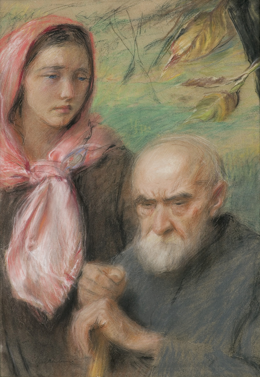 Teodor Axentowicz (Braszów w Siedmiogrodzie 1859 - Kraków 1938) – malarz, pastelista, litograf – był jednym z najbardziej znanych i cenionych malarzy polskich. Kształcił się w Akademii Sztuk Pięknych w Monachium pod kierunkiem Gabriela Hackla, Aleksandra Wagnera, Gyuli Benczúra. Studia uzupełniał w Paryżu, gdzie następnie przebywał przez lat kilkanaście. Brał udział w paryskich Salonach; w 1890 otrzymał członkostwo Société Nationale des Beaux-Arts. W tym czasie wielokrotnie wyjeżdżał również do Londynu. W 1895 powrócił do kraju i zamieszkał na stałe w Krakowie, powołany na profesora tamtejszej Szkoły Sztuk Pięknych (od 1900 Akademii). W uczelni tej nauczał nieprzerwanie do 1934, dwukrotnie pełniąc funkcję rektora (lata 1910-11 oraz 1927-28). Był jednym z członków-założycieli Towarzystwa Artystów Polskich „Sztuka”, członkiem wiedeńskiej „Secesji” i współpracownikiem jej pisma „Ver Sacrum”. Powodzenie przyniosły mu zwłaszcza idealizowane wizerunki wytwornych dam oraz wdzięczne portrety dziecięce. Malował też obrazy o tematyce rodzajowej; był jednym z pierwszych malarzy Huculszczyzny i Hucułów. Tworzył obrazy historyczne i kompozycje symboliczne związane z upływem czasu, przemijaniem, starością. We wczesnym, monachijskim okresie były to obrazy utrzymane w duchu akademickiego realizmu; na późniejszą twórczość artysty wywarło wpływ angielskie malarstwo XVIII w. oraz dzieła malarzy współczesnych - Boldoniego, Whistlera, Sargenta. Jego obrazy cechuje dekoracyjność, elegancja, świeżość subtelnej gamy kolorów i delikatna secesyjna stylizacja. Początkowo malował olejno i akwarelą, a po 1890 przede wszystkim mistrzowsko opanowaną techniką pastelu. Zajmował się ilustratorstwem i litografią, projektował plakaty wystaw „Sztuki”.