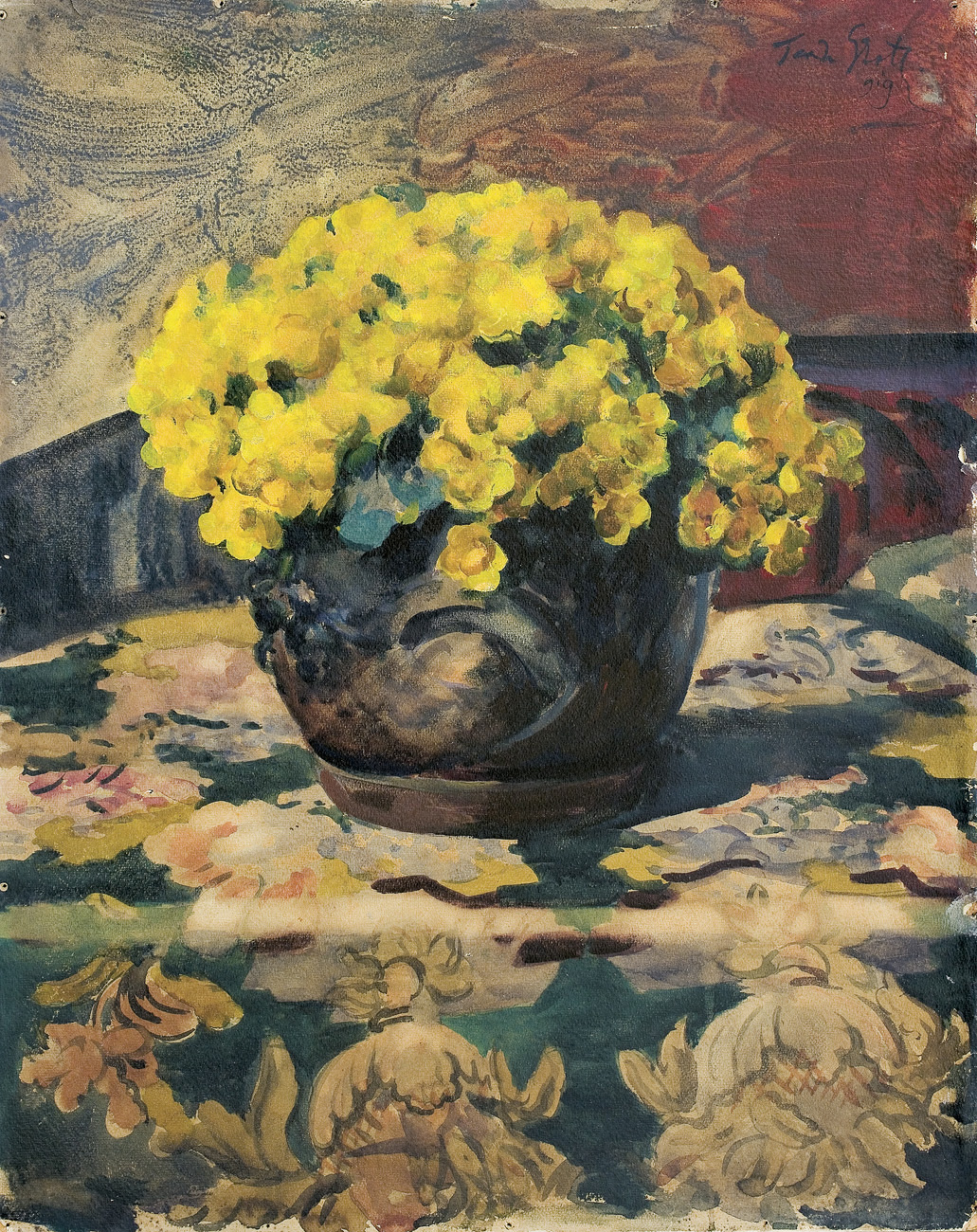 Teodor Grott (Częstochowa 1884 - Kraków 1972) - w latach 1903-1909 studiował w krakowskiej Akademii Sztuk Pięknych początkowo pod kierunkiem Floriana Cynka, później u Leona Wyczółkowskiego. W czasie studiów kilkakrotnie otrzymał medale za prace szkolne. Następnie kształcił się jeszcze w Paryżu, skąd wyjeżdżał do Brukseli i Londynu i podróżował do Włoch. Stale mieszkał w Krakowie, gdzie – począwszy od roku 1910 – wiele wystawiał w Towarzystwie Przyjaciół Sztuk Pięknych. Z czasem został członkiem honorowym Towarzystwa; od 1949 kierownikiem biura i organizatorem wystaw. Od roku 1912 należał także do Towarzystwa Artystów Polskich Sztuka. Malował pejzaże (m.in. tatrzańskie, z Ukrainy, Włoch, Francji), starą architekturę, kwiaty i martwe natury, portrety, akty. Najchętniej posługiwał się doskonale opanowaną techniką akwareli, ale malował także olejno. Zajmował się rzemiosłem artystycznym; wraz z żoną założył i prowadził w Krakowie wytwórnię kilimów.