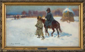 Jerzy Kossak (Kraków 1886 - Kraków 1955)- syn Wojciecha, wnuk Juliusza Kossaków - od wczesnego dzieciństwa malował pod kierunkiem ojca i dziadka. Kontynuator i naśladowca ich sztuki tworzył sceny batalistyczne, historyczne i rodzajowe z wszechobecnym motywem konia. Malował obrazy z powstania listopadowego, wojen napoleońskich oraz wiele scen z wojny 1920 roku. Najbardziej znaną jego kompozycją tego rodzaju był Cud nad Wisłą. Malował też liczne Pogonie i Pościgi ułanów za kozakami, Napady wilków, Polowania i Wesela. Tematyka tych prac sprawia, że stale cieszą się zainteresowaniem zbieraczy i publiczności, zawsze tłumnie odwiedzającej wystawy malarstwa Kossaków.