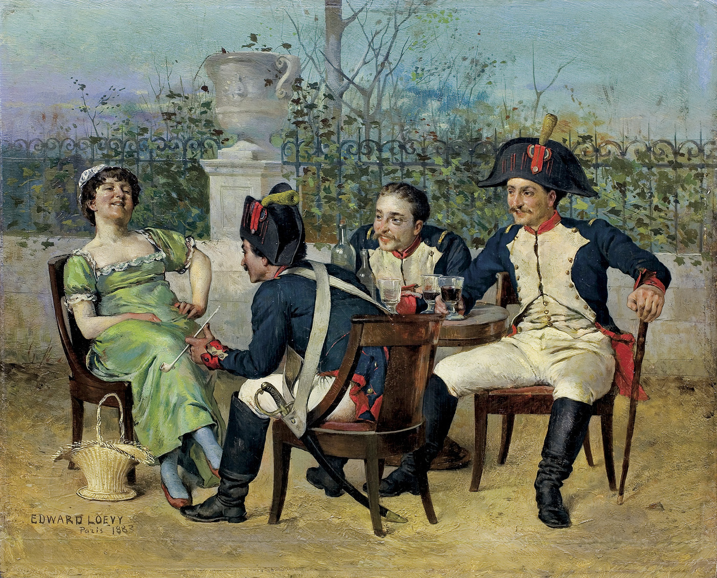 FLIRT PRZY WINIE, ŻOŁNIERZE I DZIEWCZYNA, 1883