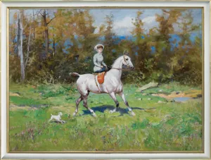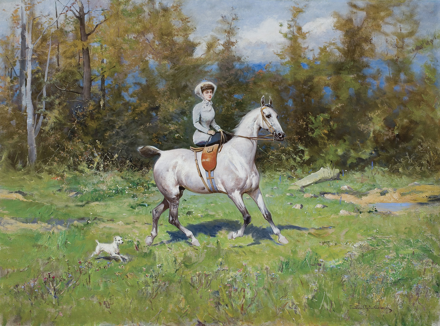 Tadeusz Ajdukiewicz (Bochnia 1851 - Kraków 1916) był artystą związanym z mecenatem arystokracji i dworów panujących; w tych kręgach zrobił prawdziwą karierę, a jego obrazy podobały się powszechnie. Studia malarskie rozpoczął w krakowskiej Szkole Sztuk Pięknych. Później kształcił się jeszcze w Wiedniu oraz w Monachium - w Akademii i w pracowni Józefa Brandta. Po studiach przez kilka lat jeździł po polskich dworach kresowych i malował portrety. Około 1877 wyjechał do Paryża, skąd, wraz z Władysławem Branickim wyjechał w – ważną dla jego przyszłej twórczości – podróż na Bliski Wschód. Około roku 1882 zamieszkał w Wiedniu, zajął pracownię po Hansie Makarcie (zm. 1884), malując dla dworu cesarskiego i arystokracji. W 1893 bawił w Londynie, gdzie, m.in. portretował księcia Walii, w 1894 pracował na dworze sułtańskim w Konstantynopolu, następnie także w Sofii, Petersburgu i Bukareszcie. W Rumunii osiadł na dłużej jako malarz nadworny Karola I. Po wybuchu I wojny światowej powrócił do kraju i, mimo starszego wieku, zaciągnął się do Legionów. Zmarł, nie wytrzymawszy trudów wojennych. Malował przede wszystkim portrety - zarówno reprezentacyjne, efektowne i eleganckie (Portret Heleny Modrzejewskiej, MNK), jak również skromne i kameralne. Tworzył też sceny myśliwskie, obrazy o tematyce wschodniej, bohaterskie sceny bitewne, rewie i przeglądy wojsk (Przegląd armii rumuńskiej, 1896).
