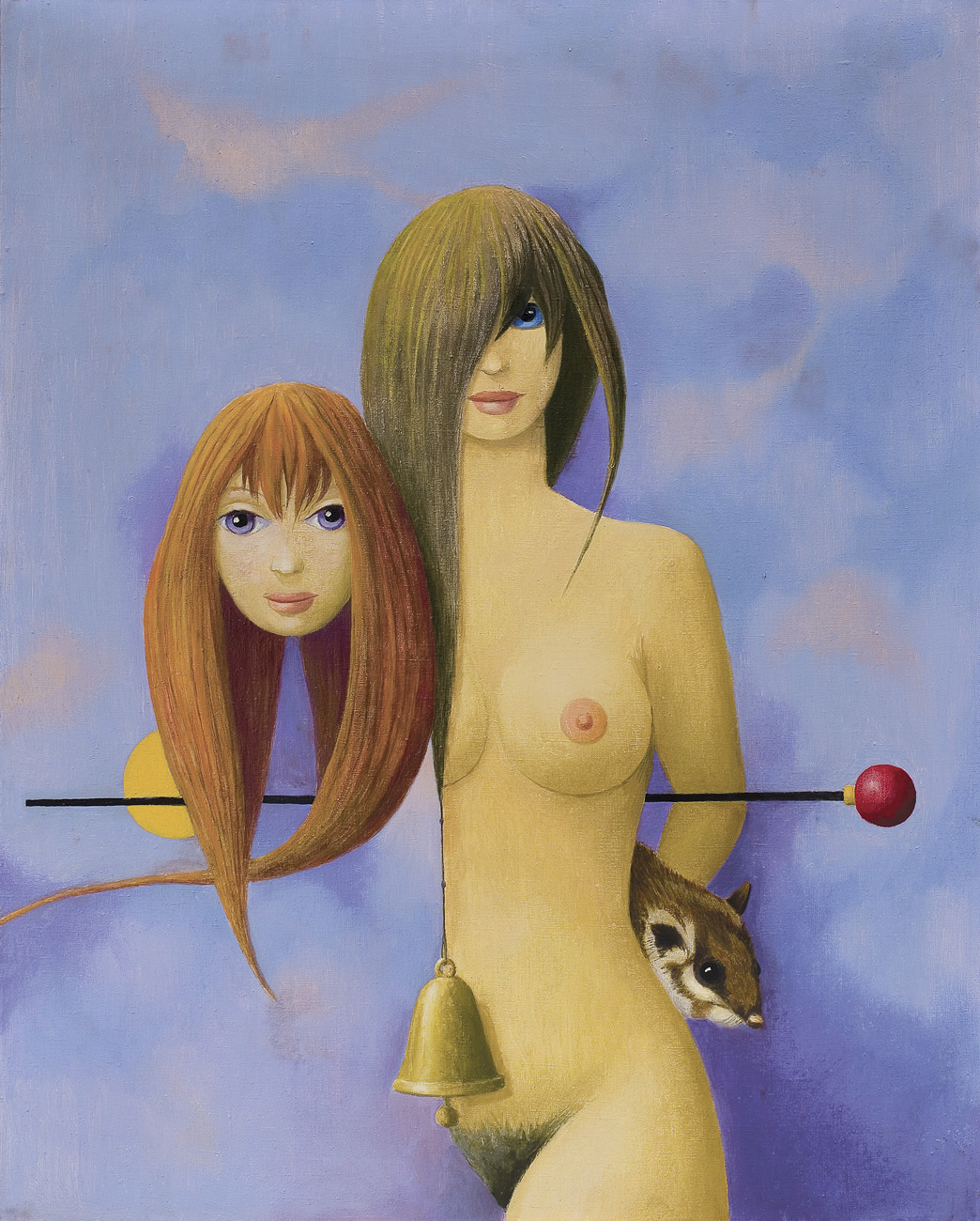 Kazimierz Mikulski (Kraków 1918 - Kraków 1998) rozpoczął studia malarskie przed II wojną światową w ASP w Krakowie, kontynuował je w latach 1939-1940 pod kierunkiem prof. Fryderyka Pautscha w Kunstgewerbeschule, powstałej za okupacji w miejsce Akademii. Po wojnie ukończył dwuletnie studia aktorskie w Studio Dramatycznym przy Starym Teatrze w Krakowie i do 1948 pracował jako aktor. Jednocześnie w 1945 ukończył Warsztat Filmowy Młodych. W latach 1948-1979 był kierownikiem plastycznym i scenografem Teatru Groteska w Krakowie, dla którego projektował lalki, kostiumy, dekoracje itp. Równolegle cały czas zajmował się malarstwem i działalnością w kręgu Tadeusza Kantora, zrazu jako członek Gru-py Młodych Plastyków, a od 1957 w Grupie Krakowskiej, której był współzałożycielem i prezesem w latach 1965-1967. Był też członkiem zespołu teatru Cricot 2, grał m.in. w spektaklach Kurka wodna, Nadobnisie i koczkodany, Umarła klasa oraz we własnej sztuce Cyrk. W swych obrazach z drugiej poł. lat 40. artysta przedstawiał lekkie, linearne formy unoszące się w pustych przestrzeniach. Było to malarstwo zarazem surrealistyczne i abstrakcyjne. Lecz już ok. 1950 zaczął malować w charaktery-styczny dlań sposób - odrzucając abstrakcję, prezentował niezliczone warianty i układy kilku ulubionych motywów (głowa lub postać kobiety-lalki, koty, motyle).
