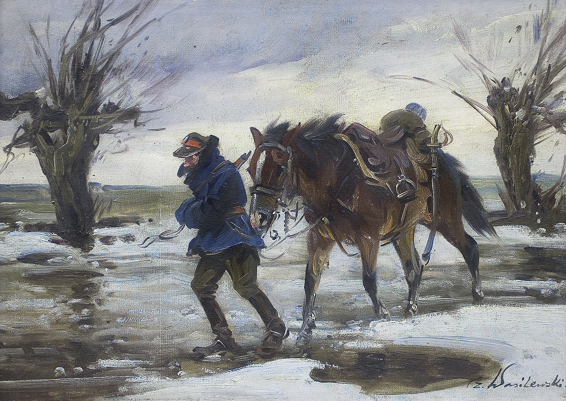 Czesław Wasilewski (ok. 1875 - Warszawa/ Łódź 1946?47) to popularny w okresie międzywojennym warszawski malarz, autor obrazów inspirowanych płótnami Kossaka, Brandta, Chełmońskiego, Wierusza-Kowalskiego czy Fałata. Był samoukiem; wprawdzie w 1911 zapisał się do warszawskiej Szkoły Sztuk Pięknych, ale o jego studiach nic bliższego nie wiadomo. Być może uczęszczał tam (1913-1917) do pracowni Wojciecha Kossaka, dla którego później, na początku lat dwudziestych, przygotowywał podmalówki do obrazów. Uczestniczył w wystawie w Lublinie (1922), wystawiał na Salonach warszawskiej Zachęty (1925,1926, 1927), w Katowicach (1926), Częstochowie (1927), Gdyni (1929), Kaliszu (1931), Poznaniu (1928, 1931). Malował przede wszystkim liczne zaprzęgi, sanny, wyjazdy na polowania, wypadki w podróży, ułanów na patrolu, łosie, sarny i dziki w lesie. Tworzył także nastrojowe pejzaże, wyraźnie inspirowane malarstwem J. Chełmońskiego Rzadziej malował także kwiaty i martwe natury. Utożsamiany z malarzem o nazwisku „Zygmuntowicz”, którego prace pojawiały się na rynku sztuki od trzydziestych lat XX wieku. Stawiany przed tym nazwiskiem inicjał I. lub F., sugerować może imię Ignacy lub Franciszek. Sylwetkę malarza bliżej omówił S. Bołdok w artykule Malarz o dwóch nazwiskach (Art and Business 1992, nr 7-8, s. 48-49).
