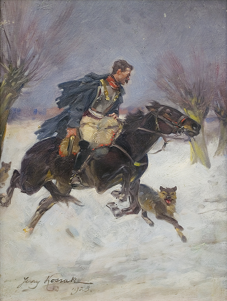 Kirasjer uciekający przed wilkami, 1928