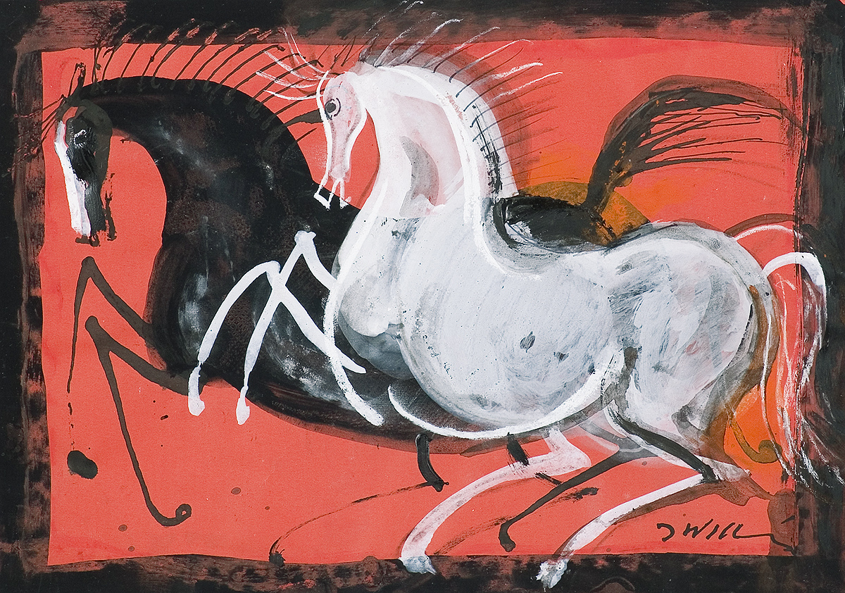 gwasz, tusz pędzel, papier