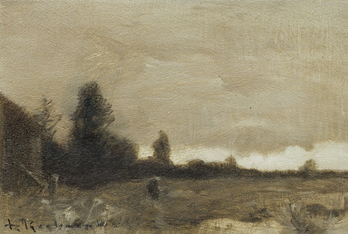 Roman Kochanowski (Kraków 1857 - Freising k. Monachium 1945) - malarz i grafik - był jednym z polskich artystów osiadłych i stałe działających w Monachium. Studia malarskie rozpoczął w Krakowie; początkowo w prywatnej pracowni Maksymiliana Cercha, a w latach 1873- 1875 w Szkole Sztuk Pięknych u Władysława Łuszczkiewicza i pejzażysty Henryka Grabińskiego. Przez następne dwa lata uczył się jeszcze na wydziale pejzażu w Akademii wiedeńskiej. W 1881 przeniósł się do Monachium, gdzie miał własną pracownię, a niebawem założył rodzinę. Często jednak przyjeżdżał do Krakowa, bywał w Poznańskiem, odbył podróż po Galicji i Podolu, rysując krajobrazy i widoki miast, które weszły następnie do albumu wydanego w Wiedniu w roku 1898. Artysta należał do monachijskiego Kunstvereinu, brał udział w wielu wystawach w Niemczech, w Wiedniu, w Londynie; swoje prace przesyłał też na pokazy krajowe. Malował przede wszystkim pejzaże a tylko z rzadka kwiaty i portrety. Stałym i ulubionym motywem jego obrazów był polski, podkrakowski krajobraz z wplecionymi weń postaciami ludzi. Obrazy artysty, malowane często na niewielkich deseczkach, pozbawione warstwy anegdotycznej odznaczają się niecodziennymi walorami malarskimi, harmonią koloru i pełnym liryzmu nastrojem. Zauważane i nagradzane na licznych wystawach były też wysoko cenione na rynku sztuki. W roku 1892, po wystawie w Wiedniu, jeden z obrazów Kochanowskiego zakupił do swoich zbiorów cesarz Franciszek Józef; dwa inne nabyli członkowie cesarskiej rodziny. Wielbicielem jego malarstwa był Karol Józef Luitpold, książę regent Bawarii. Wielka wrażliwość artysty na krajobraz i przyrodę widoczna jest także w jego rysunkach i akwafortach.