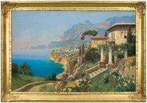 Alois Arnegger (Wiedeń 1879 – Wiedeń 1963) pejzażysta austriacki; studiował w ASP w Wiedniu pod kierunkiem pejzażysty Roberta Russa i malarza historycznego Augusta Eisenmengera. W początkowym okresie twórczości odbywał wiele podróży studyjnych w szwajcarskie i austriackie Alpy, malując krajobrazy z odwiedzanych okolic. Z początkiem lat dwudziestych wyjechał do Włoch, gdzie pozostał na dłużej. Malował efektowne, iskrzące się barwami pejzaże znad Morza Śródziemnego, widoki okolic Neapolu, z Capri, Sycylii, znad Jeziora Como czy Garda. W późniejszych latach życia, po powrocie do kraju malował głównie zimowe pejzaże alpejskie, ujmowane w efektownym, często dramatycznym oświetleniu. Prace artysty znajdują się w wielu kolekcjach prywatnych i muzealnych, m.in. w Wiedniu, Stuttgarcie, Monachium, Amsterdamie, Paryżu, Sztokholmie, New Yorku i Chicago.