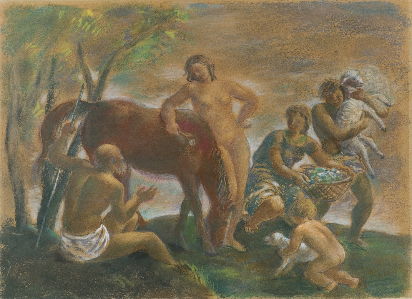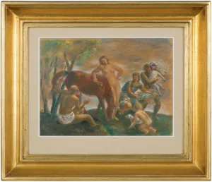 Wacław Borowski (Łódź 1885 - Łódź 1954) - malarz, grafik, scenograf - w latach 1905-1909 studiował w Krakowie malarstwo u Józefa Mehoffera w Akademii Sztuk Pięknych i, równolegle, historię sztuki na Uniwersytecie Jagiellońskim. W latach 1909-1913 przebywał w Paryżu. Zafascynowany dawnym malarstwem, kopiował wiele obrazów w muzeach. W okresie 1911-1914 podróżował do Włoch, studiując sztukę renesansu. Lata 1914-1919 spędził w Szwajcarii. Po powrocie do kraju mieszkał w Warszawie, gdzie w latach 1927-1933 był profesorem malarstwa i kompozycji w Instytucie Sztuk Plastycznych. Czynny na wielu polach, zajmował się malarstwem sztalugowym, dekoracyjnym malarstwem ściennym (m.in. polichromie na Zamku Królewskim, na Rynku Starego Miasta w Warszawie), uprawiał grafikę (trzy teki litografii), projektował plakaty, ilustracje książkowe i scenografie dla teatrów Warszawy, Krakowa i Łodzi. Był współzałożycielem i prezesem grupy „Rytm”, członkiem Stowarzyszenia Grafików „Ryt”, należał do Towarzystwa Artystów Polskich „Sztuka”. Wiele wystawiał tak w kraju jak i za granicą, a jego prace wielokrotnie odznaczane były medalami i nagrodami. Twórczość Borowskiego należy do „klasycyzującego” nurtu polskiego malarstwa, związanego m.in. z artystami skupionymi wokół grupy „Rytm”. Jego obrazy wyróżnia zarówno dążność do syntezy i swoistego uproszczenia a nawet pewnej geometryzacji form, jak miękkość i statyka układów kompozycyjnych, opartych na rytmie ruchu, linii i płaszczyzn. Wrażenie ciszy, ładu i harmonii podtrzymuje łagodne światło i subtelna, pastelowa kolorystyka współtworząca liryczny nastrój pogodnej melancholii.