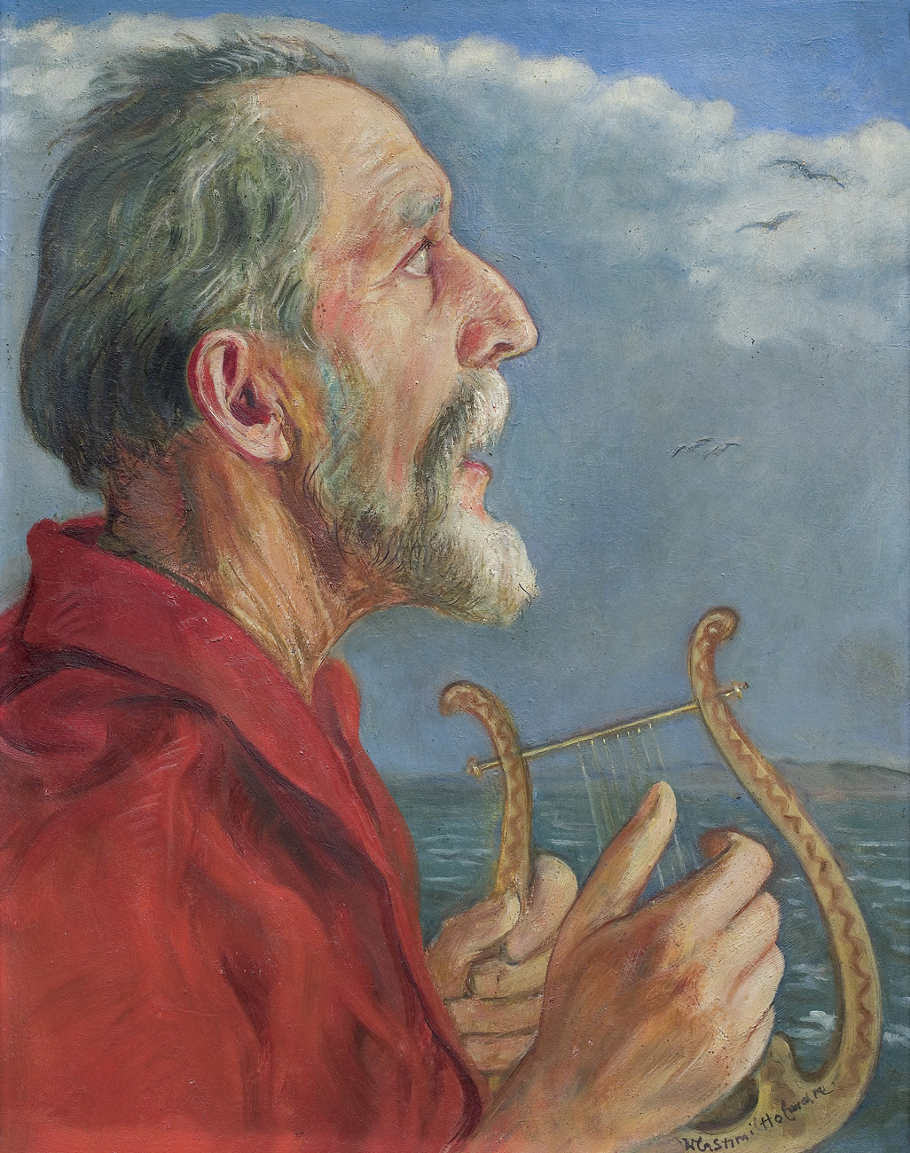 Wlastimil Hofman / Vlastimil Hofmann (Praga 1881 - Szklarska Poręba 1970) studiował w krakowskiej Szkole Sztuk Pięknych - początkowo pod kierunkiem Floriana Cynka, później także u Jana Stanisławskiego, Leona Wyczółkowskiego i Jacka Malczewskiego. W latach 1899-1902 uczył się jeszcze u Jeana Léona Gérôme’a w paryskiej École des Beaux-Arts. W czasie I wojny światowej przebywał w Pradze i w Paryżu; od 1920 stale mieszkał w Krakowie. Dużo wystawiał; należał do wielu stowarzyszeń twórczych - był współzałożycielem „Grupy Pięciu” (1905) i „Grupy Zero” (1908), członkiem Związku Artystów Czeskich „Manes”, a od 1911 członkiem Tow. Artystów Polskich „Sztuka”. W czasie II wojny światowej poprzez ZSRR i Turcję przedostał się do Jerozolimy, skąd w roku 1946 wrócił do Krakowa. Od roku 1947 stale mieszkał w Szklarskiej Porębie. Hofman malował przede wszystkim fantastyczno-symboliczne kompozycje o motywach ludowych oraz sceny rodzajowe, portrety i pejzaże. Jego obrazy mimo bliskich analogii i powiązań ze sztuką Malczewskiego odznaczają się zawsze indywidualnym charakterem, stylem i nastrojem.