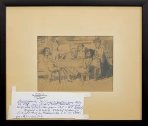 ze zbiorów Jerzego Ficowskiego (1924-2006), poety, pisarza, tłumacza, m.in. wybitnego znawcy twórczości Brunona Schulza. Do rysunku dołączone jest – wydane przez J. Ficowskiego – rękopiśmienne potwierdzenie autorstwa Brunona Schulza.