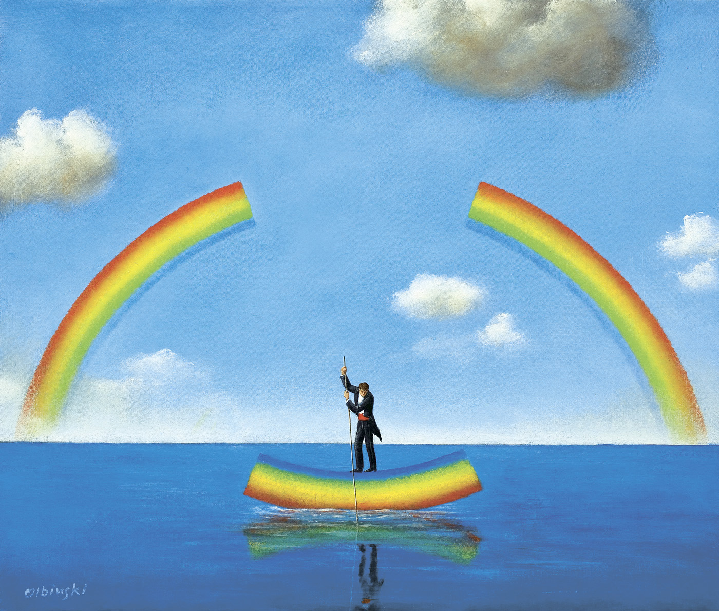 Rafał Olbiński (Kielce 1945, mieszka w Warszawie) - studiował na Wydziale Architektury Politechniki Warszawskiej, gdzie uzyskał dyplom w 1969. Od lat studenckich zajmował się grafiką użytkową i plakatem. Uczestniczył w wielu polskich i międzynarodowych wystawach związanych z grafiką i plakatem. Był autorem oprawy graficznej magazynu "Jazz Forum". W 1981 wyjechał z Polski i osiadł w Nowym Jorku gdzie kantynuował twórczość plakatową, a także zajął się malarstwem, rysunkiem prasowym i ilustracją. Debiutował w 1981 okładką do pisma "Psychology Today". Publikował w czasopismach takich jak "Newsweek", "Time", "Business Week", "The New York Times", "Atlantic Monthly", "Playboy", "New Yorker", "Omni". Od 1985 wykładał w School of Visual Arts w Nowym Jorku. Od wielu lat projektuje też plakaty dla New York City Opera. W 1994 otrzymał paryską nagrodę za najbardziej pamiętny plakat roku (International Oscar for the World's Most Memorable Poster "Prix Savignac 1994"), w 1995 wygrał konkurs na plakat "Nowy Jork – stolica świata". Jest reprezentowany w zbiorach takich, jak Museum of Modern Art w Nowym Jorku, Library of Congress Print Collection w Waszyngtonie, Muzeum Plakatu w Wilanowie oraz w wielu innych publicznych i prywatnych kolekcjach na całym świecie. Od lat 90. często bywa i wystawia w Polsce, obecnie mieszka w Warszwie. Jego prace odznaczają się specyficznym typem obrazowania, który zaskarbił mu opinię surrealisty. Dzięki zaskakującym zestawieniom elementów obrazu, łączeniu różnych planów i niezwykłemu skalowaniu, a także zawsze obecnej w pracach Olbińskiego narracji, jego dzieła cieszą się niesłabnącym zainteresowaniem i popularnością.