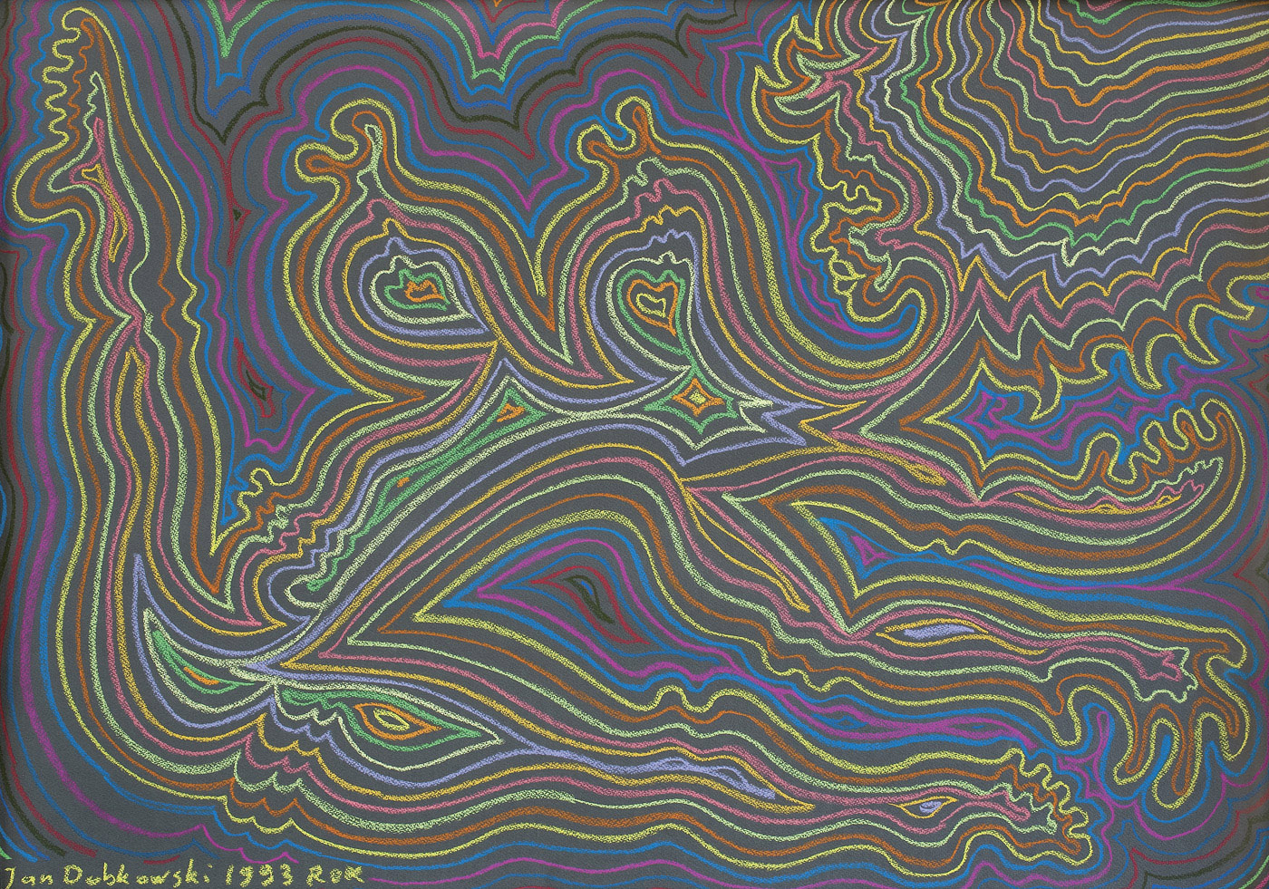 Jan Dobkowski (Łomża 1942, mieszka w Warszawie) studiował w latach 1962-1968 na Wydziale Malarstwa warszawskiej ASP pod kierunkiem prof. Juliusza Studnickiego i Jana Cybisa. Będąc jeszcze na studiach, w 1966, utworzył duet artystyczny, w którym jego partnerem był Jerzy (Jurry) Zieliński. Ich pierwsza wspólna wystawa pn. Neo-Neo-Neo odbyła się w Warszawie w 1967. Wystawiali wspólnie do 1970. W 1968 powstały pierwsze zielono-czerwone obrazy Dobkowskiego (używającego w tym czasie pseudonimu Dobson). W pracach tych, operujących giętkimi, falistymi liniami, w których upatrywano wpływów secesji, artysta używał sposobów rodem z op-artu dla wywołania złudzeń optycznych (wirowanie, mżenie, pozorny ruch form). Równolegle z obrazami tworzył też formy z płyt i folii do montowania w przestrzeni. Złoty medal na Sympozjum Złotego Grona w Zielonej Górze w 1971 i blisko roczny pobyt w USA na stypendium Fundacji Kościuszkowskiej w 1972 to kolejne etapy pełnej sukcesów kariery malarza. Wyraźną zmianę nastroju i wymowy jego prac przyniosły wydarzenia 1980-1981 roku, zwłaszcza wprowadzenie stanu wojennego. Monochromatyczne, ciemne płótna znaczył wtedy nikłymi, wiotkimi liniami rysunku. Najczęstszym motywem były patriotyczne i religijne symbole, dopowiadane tytułami nawiązującymi do realiów czasu. Kolejna radykalna zmiana nastąpiła ok. 1990. Symbolicznym zwiastunem nowego okresu stał się olbrzymi, radosny, eksplodujący bogactwem barw, kształtów i ruchu obraz ...a życie sobie płynie... (394 x 588 cm) z 1990-1991. Podobne cechy formalne charakteryzują twórczość artysty w całej dekadzie lat 90. Równolegle z malarstwem Dobkowski pracuje nad rysunkiem, będącym bardzo ważnym dopełnieniem jego twórczości.