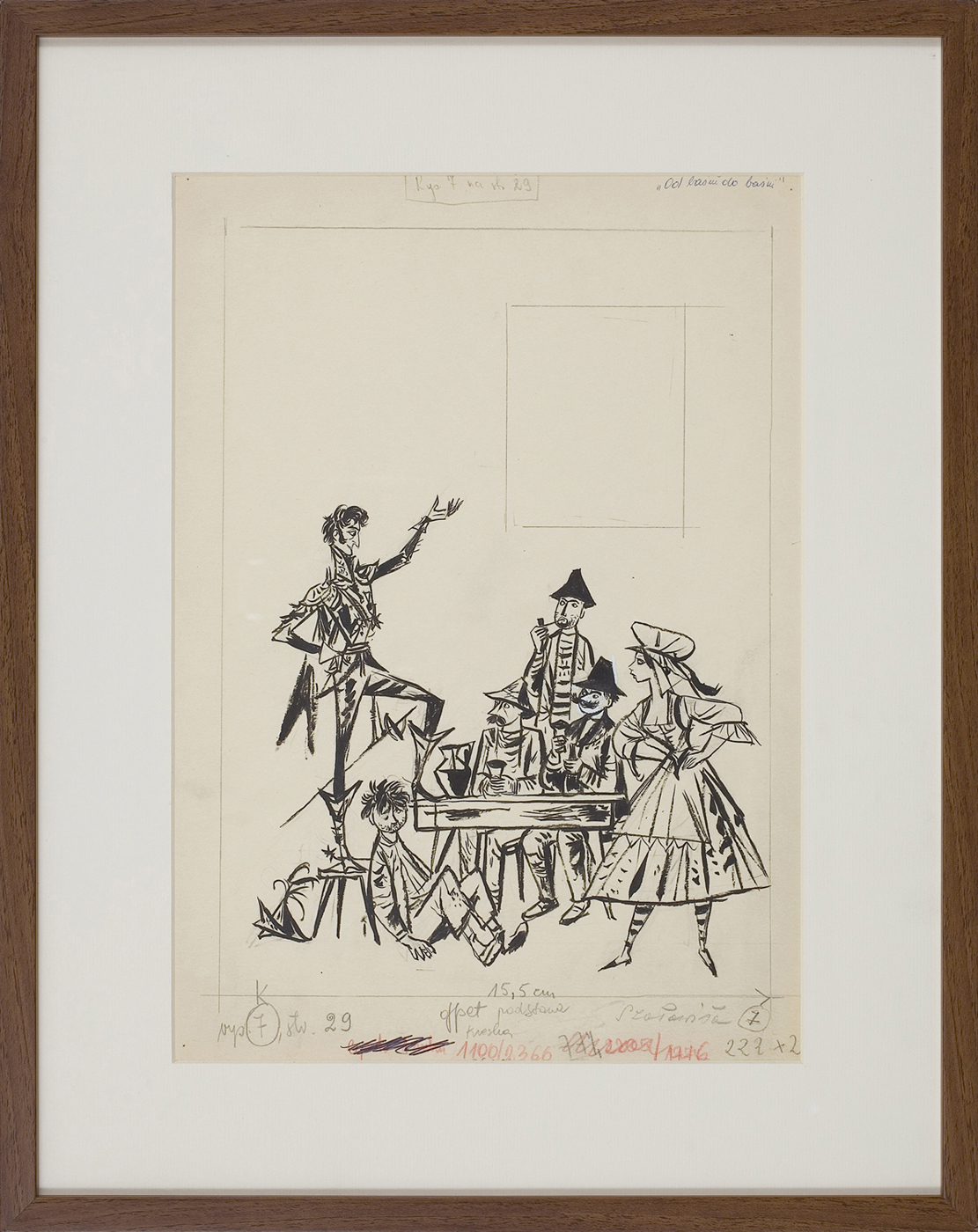 tusz patyk, gwasz biały, papier kremowy