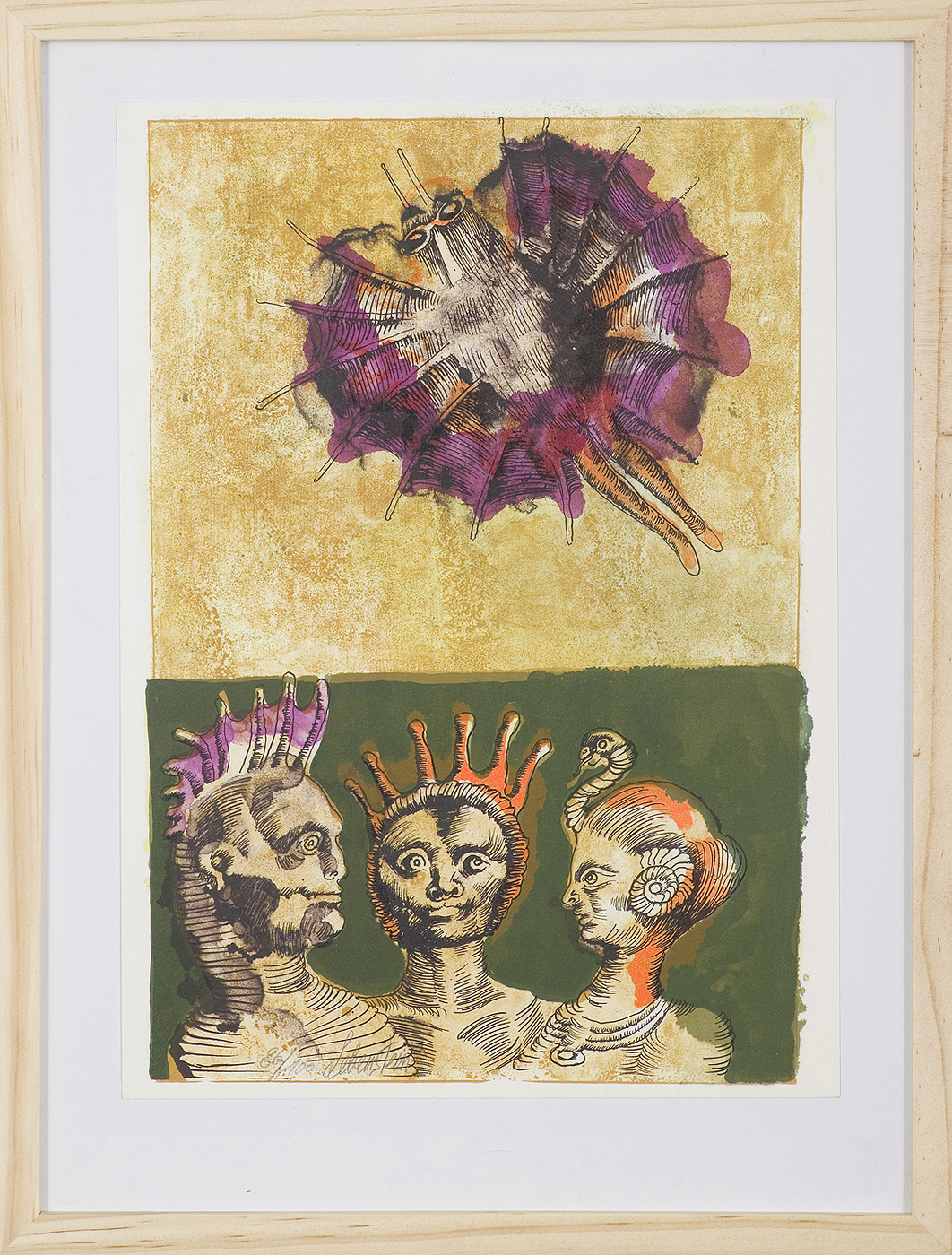 Jan Lebenstein (Brześć Litewski 1930 - Kraków 1999) w latach 1948-1954 studiował malarstwo w ASP w Warszawie pod kierunkiem prof. Eugeniusza Eibischa i Artura Nachta-Samborskiego. W 1955 wziął udział w wystawie w warszawskim Arsenale. Zaprzyjaźniony w czasie studiów z Mironem Białoszewskim, swą pierwszą wystawę indywidualną pokazał w 1956 w Teatrze na Tarczyńskiej. W 1959 zdobył Grand Prix de la Ville de Paris na I Biennale Młodych w Paryżu i w tym roku przeniósł się na stałe do Paryża. Po seriach "figur kreślonych" (na papierze milimetrowym) i "figur hieratycznych" z lat 1955-1958 maluje cykl "figur osiowych" (1958-1962), które wystawia w Paryżu i USA. Równolegle w 1960 zaczyna rysowane "karnety", rodzaj dziennika, który w przyszłości dostarczy motywów wykorzystanych w obrazach. W latach 1964-1965 maluje "Bestiarium", cykl fakturowych, archaizowanych stworów przypominających prehistoryczne wykopaliska. Bezpośrednio po nich wprowadza do swych obrazów postaci ludzkie i fantastyczne, odgrywające sceny ni to mitologiczne, ni to ze snu, często przesycone erotyką. W 1970 projektuje witraże dla Centre du Dialogue w Paryżu. W W 1971 otrzymuje obywatelstwo francuskie 1974 powstają gwasze inspirowane Folwarkiem zwierzęcym George'a Orwella. W latach 1976-1989 tworzy wyłącznie w technice gwaszu i pastelu, podejmując tematykę mitologiczną i zaczerpniętą z Biblii: cykle ilustracji do Księgi Hioba (wyd. 1979) i do Apokalipsy (wyd. 1986) w nowych przekładach Czesława Miłosza. W 1989 powraca do malarstwa olejnego (cykl "Pergamon"). Artysta otrzymał m. in. nagrodę Fundacji im. Alfreda Jurzykowskiego w 1976, Nagrodę Muzeum Archidiecezji Warszawskiej w 1985, Nagrodę im. Jana Cybisa w 1987.
