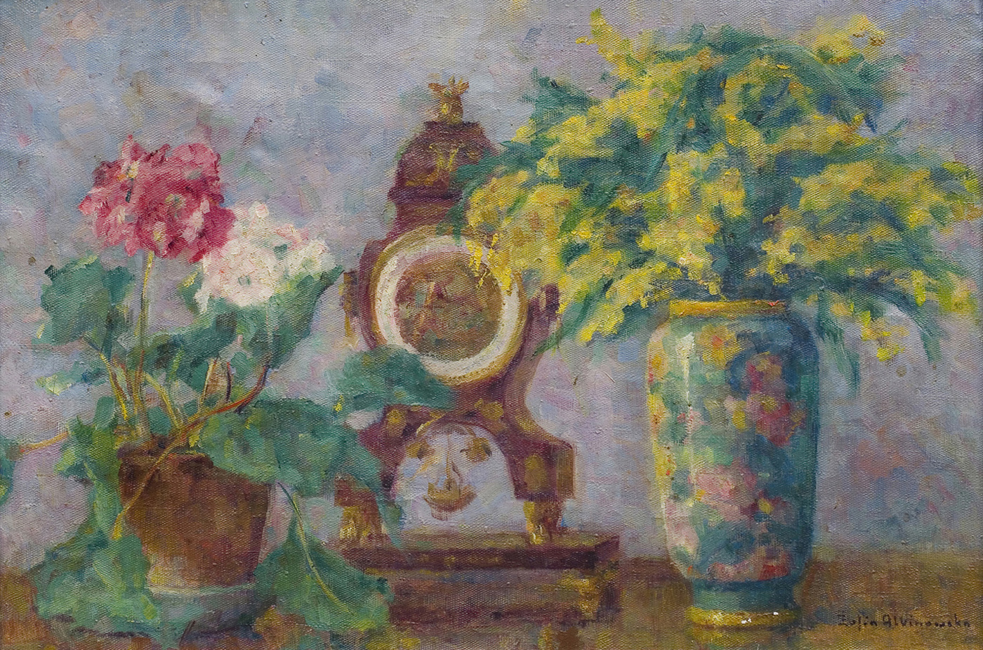 Zofia Albinowska naukę malarstwa i rysunku rozpoczęła w Wiedniu – w roku 1901 w prywatnej szkole H. Strehblowa, od 1902 w szkole F. Hohenberga i F. Kruisa. W latach 1906-1909 była w Paryżu, początkowo studiując w Académie Colarossi, a od 1906 w École Nationale des Beaux Arts, gdzie zajmowała się także grafiką. Poznała wówczas Olgę Boznańską, chętnie korzystając z jej rad i wskazówek. Z Paryża wyjeżdżała do Anglii, Belgii, Holandii i Włoch. W latach 1909-1912 ponownie studiowała w Wiedniu, a w 1912 zamieszkała we Lwowie i podjęła studia matematyczne na Politechnice i Uniwersytecie. Podczas I wojny światowej wyjeżdżała do Wiednia i Lowrany. W 1922 wyszła za mąż za W.Minkiewicza, profesora Politechniki Lwowskiej. W 1926 była na Sycylii. Była osobą bardzo czynną – w latach 1917-1939 pełniła funkcję prezesa Związku Artystek Polskich, w 1922-1939 był wiceprezesem lwowskiego TPSP. Dużo wystawiała – począwszy od debiutu w 1903 w Wiedniu, wielokrotnie w TPSP we Lwowie i w Krakowie, w TZSP w Warszawie ((1930 wyróżnienie, 1932 medal brązowy, 1935 medal srebrny), w Łodzi, Poznaniu, Bydgoszczy. Brała udział w międzynarodowych wystawach artystek : 1910 w Pradze, 1937 w Paryżu, 1939 w Nowym Jorku. Miała też kilka wystaw indywidualnych – we Lwowie, Krakowie i Warszawie. Po roku 1945 pozostała we Lwowie nadal wiele pracując. W 1956 miała wystawę obrazów i grafik, a w 1972 Lwowska Galeria Obrazów urządziła dużą pośmiertną wystawę jej prac. We wcześniejszym okresie twórczości Albinowska chętnie malowała portrety (np. Portret L. Staffa, 1913; Autoportret), typy charakterystyczne ( Bretonki, Rybak, 1908), pejzaże i martwe natury, które później – po roku 1920 – stały się głównym tematem jej obrazów. Malowała kwiaty, stylowe meble, starą porcelanę, dywany, lustra wypełniające pogodne, łagodnie oświetlone wnętrza. Obrazy artystki wyróżniają się dużą kulturą malarską, przemyślaną kompozycją i subtelnym kolorytem.