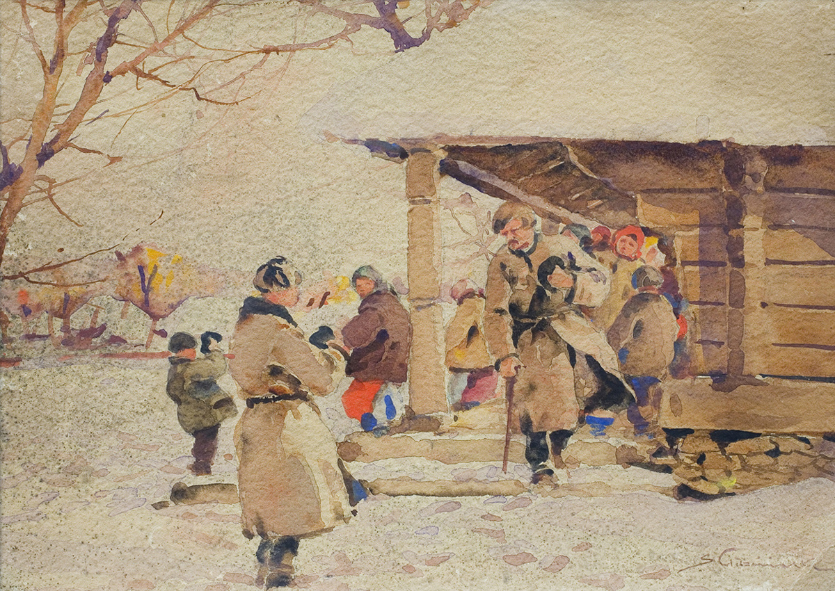 Stanisław Gibiński (Rzeszów 1882 – Katowice 1971) od wczesnej młodości pracował na kolei, początkowo w Rzeszowie, następnie w Krakowie, gdzie równocześnie mógł podjąć naukę w Akademii Sztuk Pięknych, prawdopodobnie jako wolny słuchacz. W czasie I wojny światowej służył w II Brygadzie Legionów dowodzonej przez J. Hallera i odbył kampanię w Karpatach, walcząc pod Rafajłową, Mołodecznem, Przełęczą Pantyrską. Po wojnie nadal pracował na kolei, łącząc pracę zawodową z twórczością plastyczną. Był malarzem akwarelistą; malował pejzaże, wiejskie sceny rodzajowe, rybaków czy polowania, które najczęściej przedstawiał w śnieżnym, zimowym pejzażu. Sam często uczestniczył w polowaniach i ten temat znał doskonale. Malował też moczary, rozlewiska, krajobrazy jesienne. W jego malarstwie wyraźnie widoczne są inspiracje sztuką Fałata, ale też Wyczółkowskiego i malarzy krakowskiej szkoły pejzażu. Artysta wielokrotnie uczestniczył w wystawach krakowskiego TPSP, a po 1926 także w wystawach „Niezależnych“. Wystawiał też i w innych miastach, a jego sztuka cieszyła się znacznym powodzeniem