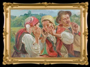 Wincenty Wodzinowski studia malarskie rozpoczął w latach 1880 - 1881 w warszawskiej Klasie Rysunkowej pod kierunkiem W. Gersona; następnie, w latach 1881 - 1889 studiował w Szkole Sztuk Pięknych w Krakowie, m.in. u W.Łuszczkiewicza, L.Loefflera F.Cynka i J.Matejki; a w latach 1889-92 w Akademii Sztuk Pięknych w Monachium u A.Wagnera. W roku 1896 zamieszkał w Swoszowicach k. Krakowa i został profesorem malarstwa na Wyższych Kursach dla Kobiet przy krakowskim Muzeum Techniczno-Przemysłowym. Zaprzyjaźniony z I.Korwin-Milewskim, znanym kolekcjonerem i mecenasem sztuki, w latach 1892 - 1907 pracował głównie na jego zamówienie. We wcześniejszym okresie malował portrety, poźniej przede wszystkim typy ludowe i sceny rodzajowe z życia podkrakowskiej wsi.