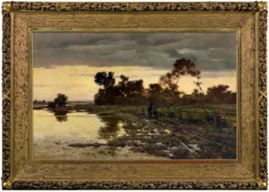 Wilhelm Richter-Rheinsberg – malarz i grafik niemiecki. Oprócz malarstwa zajmował się również pedagogiką – był nauczycielem rzemiosła w Berlinie. W latach 1888-1895 odbywał liczne podróże na wschód: do Rosji i Polski. Malował obrazy do kościołów w Poczdamie i w Berlinie. Prezentowany obraz jest prawdopodobnie pejzażem z Polesia.