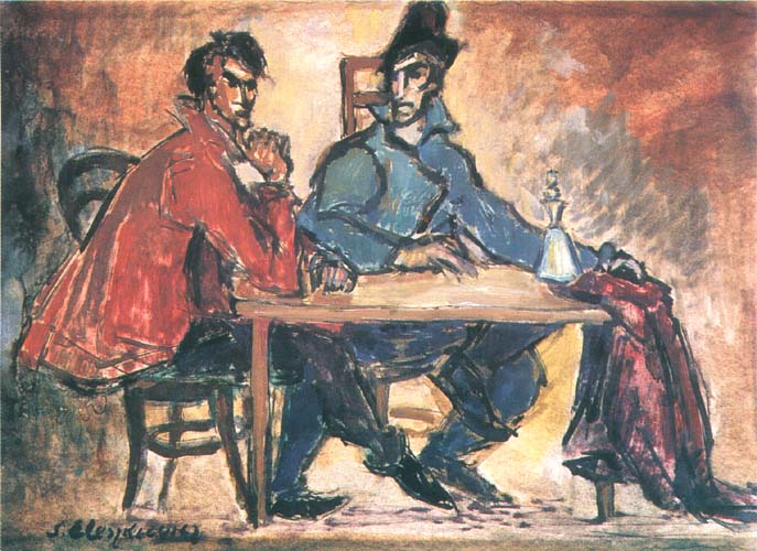 Stanisław Eleszkiewicz (Czutowo k. Połtawy 1900 - Paryż 1963) - malarz, rysownik, projektant mozajek i witraży - od roku 1914 uczył się w Szkole Sztuk Pięknych w Mirgorodzie. W 1918 wstąpił do wojska, a ciężko ranny przez pół roku przebywał w szpitalu. W latach 1919-1921 studiował w Szkole Sztuk Pięknych w Atenach. Następnie był w Neapolu i w Rzymie, a w roku 1923 zamieszkał na stałe w Paryżu i wielokrotnie wystawiał w paryskich galeriach. Malował olejno, gwaszem i temperą, chętnie używał też pasteli. Tworzył ekspresyjne sceny rodzajowe, portrety i pejzaże. Wiele prac artysty znajduje się w zbiorach prywatnych w Paryżu i w Stanach Zjednoczonych.