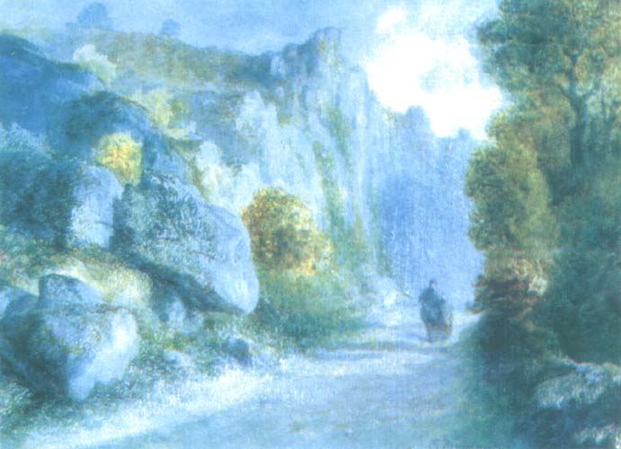 Teofil Kwiatkowski (Pułtusk 1809 - Avallon w Burgundii 1891) - wybitny przedstawiciel romantyzmu w malarstwie polskim - w latach 1825-1830 studiował malarstwo na Oddziale Sztuk Pięknych Uniwersytetu Warszawskiego u A. Brodowskiego i A. Blanka. Jako oficer 4. pułku piechoty walczył w powstaniu listopadowym; po klęsce jego emigrował do Francji, gdzie pozostał do końca życia. początkowo przebywał w Avignonie, później w Paryżu. Tu studiował jeszcze u A. Toussainta, P. Sentiesa, J. L. Dulonga i L. Cognieta. Utrzymywał bliskie kontakty ze środowiskiem emigracyjnym, m.in. z rodziną ks. Czartoryskich, Adamem Mickiewiczem, Fryderykiem Chopinem, Cyprianem Kamilem Norwidem, Teofilem Lenartowiczem. Wielokrotnie portretował Chopina (także na łożu śmierci), któremu poświęcił też dużą, symboliczną kompozycję Bal w Hôtel Lambert - Polonez Chopina. Malował piękne, przesycone romantyczną aurą krajobrazy z Prowansji i Burgundii. Malował obrazy olejne i bardzo liczne, mistrzowskie akwarele – portrety, pejzaże, sceny rodzajowe, patriotyczne, kostiumowe i alegoryczne. Jego dzieła odznaczają się niepoślednimi walorami kolorystycznymi, emocjonalnym stosunkiem do natury, a także typowo romantyczną skłonnością do fantazji i metafory, zabarwionej często odcieniem melancholii. Artysta wystawiał, m.in. na oficjalnych Salonach paryskich (1839-1881), nadsyłał swe prace także na wystawy krajowe (1862-1873 TZSP w Warszawie). Jego obrazy, akwarele, rysunki znajdują się w Muzeum Mickiewicza w Paryżu, w zbiorach Muzeów Narodowych w Warszawie, Krakowie i Poznaniu, pozostałe są w rękach prywatnych we Francji. Na rynku antykwarskim są rzadkością.
