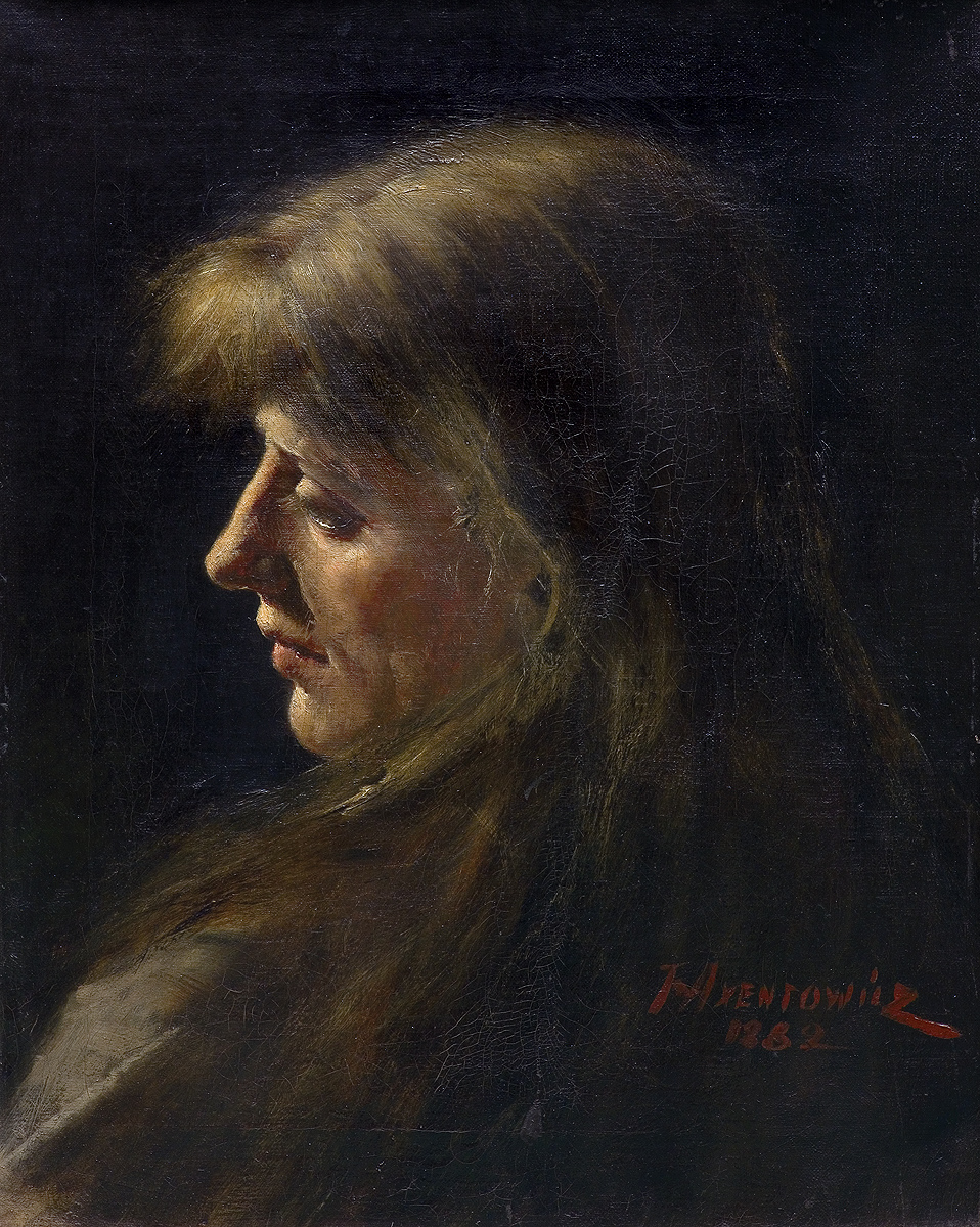 Teodor Axentowicz (Braszów w Siedmiogrodzie 1859 - Kraków 1938) – malarz, pastelista, litograf – był jednym z najbardziej znanych i cenionych malarzy polskich. Kształcił się w Akademii Sztuk Pięknych w Monachium pod kierunkiem Gabriela Hackla, Aleksandra Wagnera, Gyuli Benczúra. Studia uzupełniał w Paryżu, gdzie następnie przebywał przez lat kilkanaście. Brał udział w paryskich Salonach; w 1890 otrzymał członkostwo Société Nationale des Beaux-Arts. W tym czasie wielokrotnie wyjeżdżał również do Londynu. W 1895 powrócił do kraju i zamieszkał na stałe w Krakowie, powołany na profesora tamtejszej Szkoły Sztuk Pięknych (od 1900 Akademii). W uczelni tej nauczał nieprzerwanie do 1934, dwukrotnie pełniąc funkcję rektora (lata 1910-11 oraz 1927-28). Był jednym z członków-założycieli Towarzystwa Artystów Polskich „Sztuka”, członkiem wiedeńskiej „Secesji” i współpracownikiem jej pisma „Ver Sacrum”. Powodzenie przyniosły mu zwłaszcza idealizowane wizerunki wytwornych dam oraz wdzięczne portrety dziecięce. Malował też obrazy o tematyce rodzajowej; był jednym z pierwszych malarzy Huculszczyzny i Hucułów. Tworzył obrazy historyczne i kompozycje symboliczne związane z upływem czasu, przemijaniem, starością. We wczesnym, monachijskim okresie były to obrazy utrzymane w duchu akademickiego realizmu; na późniejszą twórczość artysty wywarło wpływ angielskie malarstwo XVIII w. oraz dzieła malarzy współczesnych - Boldoniego, Whistlera, Sargenta. Jego obrazy cechuje dekoracyjność, elegancja, świeżość subtelnej gamy kolorów i delikatna secesyjna stylizacja. Początkowo malował olejno i akwarelą, a po 1890 przede wszystkim mistrzowsko opanowaną techniką pastelu. Zajmował się ilustratorstwem i litografią, projektował plakaty wystaw „Sztuki”.