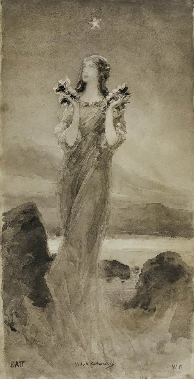 Wilhelm Kotarbiński (Nieborów 1849 – Kijów 1921) kształcił się w warszawskiej Klasie Rysunkowej pod kierunkiem Rafała Hadziewicza (lata1867-1871), a od roku 1872 także w Akademii Św. Łukasza w Rzymie. Po ukończeniu studiów otworzył w Rzymie własną pracownię, w której udzielał także lekcji rysunków; jego uczennicą była m.in. Maria Baszkircew. Do kraju wrócił w 1888 i odtąd przebywał głównie we własnym majątku Kalsk (lub Kulsk) na Białorusi. Stamtąd wielokrotnie wyjeżdżał do Kijowa, gdzie miał pracownię w hotelu Praga, uczestniczył w wystawach kijowskiego Tow. Artystycznego, a w 1893 był współzałożycielem Tow. Malarzy Kijowskich. Wraz z P. Swiedomskim, M. Niestierowem i M. Wrublem pracował przy dekoracji freskami kijowskiego soboru Św. Włodzimierza (ukończone 1894-1895). Był także autorem dekoracyjnych plafonów i malowideł ściennych m.in. w domu M. Tereszczenki i w pałacu B. Chanenki w Kijowie oraz w salonach pałaców w Petersburgu i Moskwie. Malował przede wszystkim kompozycje o tematach biblijnych bądź antycznych – z życia starożytnego Wschodu, Grecji i Rzymu; tworzył też pejzaże oraz sceny fantastyczne i symboliczne. Jego obrazy wyróżniają się wyrafinowaną kolorystyką, swobodną techniką, swoistą stylizacją form i specyficznym, często tajemniczym nastrojem. Największa popularność artysty przypada na dziewięćdziesiąte lata XIX wieku, kiedy – ze względu na „antyczną” tematykę swych obrazów – bywał porównywany z Siemiradzkim. Dzieła Kotarbińskiego rzadko pojawiają się na rynku sztuki; większość jego prac zaginęła bądź uległa zniszczeniu w czasie pierwszej wojny światowej i rewolucji bolszewickiej.