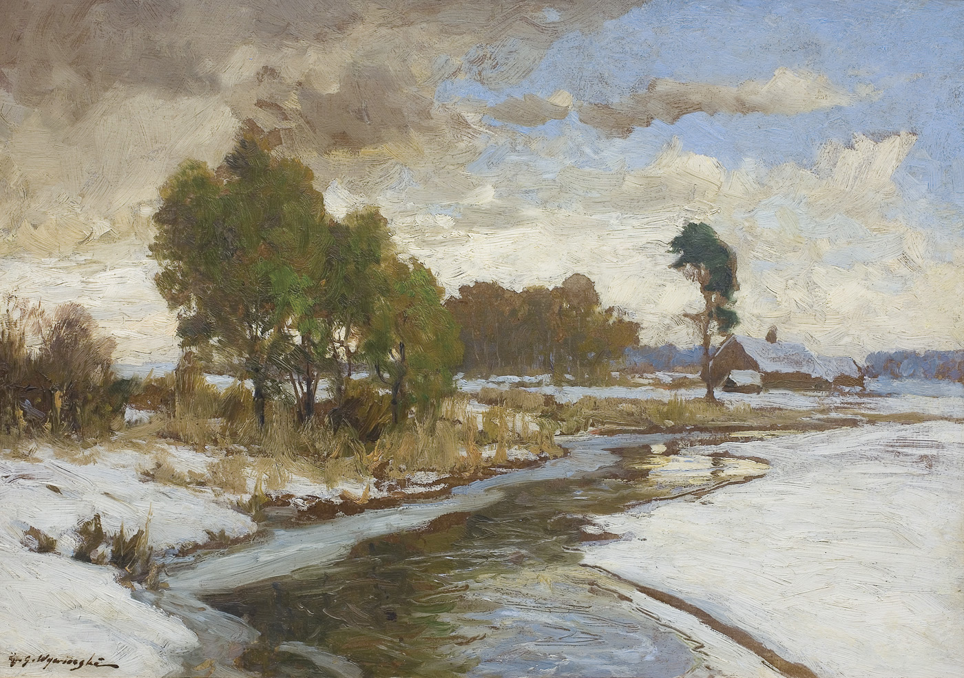 Michał Gorstkin Wywiórski (Warszawa 1861 - Berlin 1926) w latach 1883-1887 studiował w Monachium; w Akademii u profesorów Karla Raupa i Nikolausa Gysisa oraz równolegle w prywatnych pracowniach Józefa Brandta i Alfreda Wierusza-Kowalskiego. W 1884 debiutował na wystawie w krakowskim TPSP, swoje prace pokazywał też w Monachium, gdzie w 1894 na międzynarodowej wystawie w Glaspalast został wyróżniony medalem za obraz Z puszczy litewskiej. W 1895 przeniósł się do Berlina, zaproszony przez Wojciecha Kossaka i Juliana Fałata do pracy przy panoramie Berezyna (1895-1896). W Berlinie zamieszkał na dłużej, a następnie przebywał w Wielkopolsce i w Warszawie. Współpracował też z Janem Styką przy panoramie Bitwa pod Sybinem (1897), a w 1900 wspólnie z Kossakiem podróżował do Hiszpanii i Egiptu, aby wykonać szkice plenerowe do zamierzonych panoram Somosierra (nie zrealizowana) i Bitwa pod piramidami (1901). Wyjeżdżał także na Litwę, wyspę Sylt, do Norwegii, Szwecji, nad Morze Północne i Bałtyk, malował w Amsterdamie, na Krymie i Kaukazie. We wczesnej fazie twórczości, pod silnym wpływem Brandta i Wierusza-Kowalskiego, malował sceny myśliwskie i rodzajowe oraz obrazy z Tatarami, Kozakami czy Czerkiesami, które przyniosły mu powodzenie na monachijskim rynku sztuki. Z czasem naczelnym tematem jego malarstwa stał się czysty pejzaż, postrzegany i malowany wrażliwie i z upodobaniem.