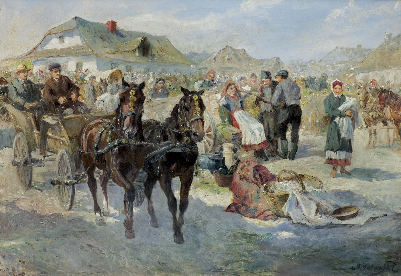Stanisław Kaczor-Batowski (Lwów 1866 - Lwów 1946) - studia artystyczne rozpoczął w krakowskiej Szkole Sztuk Pięknych pod kierunkiem Władysława Łuszczkiewicza i Floriana Cynka. Później kształcił się w Akademii w Wiedniu, a w l. 1887-1889 także w Akademii w Monachium pod kierunkiem A.Liezen-Mayera. Podróżował do Włoch, Hiszpanii, Maroka i na Krym; był także w Stanach Zjednoczonych. Stale mieszkał we Lwowie, gdzie w latach 1903-1914 prowadził własną szkołę malarstwa. Był współzałożycielem lwowskiego Stowarzyszenia Artystów „Młoda Polska”. Znany jest przede wszystkim jako batalista, twórca takich płócien, jak Atak husarii pod Chocimiem (Muzeum Wojska Polskiego w Warszawie), Pułaski pod Savannach, Bitwa pod Zadwórzem(Muzeum Wojska Polskiego w Warszawie). Malował także pejzaże, portrety i obrazy religijne. Zajmował się także ilustratorstwem, m.in. wykonał cykle kartonów i ilustracji do utworów J. Słowackiego, powieści H. Sienkiewicza i E. Orzeszkowej. Projektował witraże (np. do katedry łacińskiej we Lwowie), zajmował się malarstwem ściennym, współpracując m.in. przy dekoracji lwowskiego teatru.