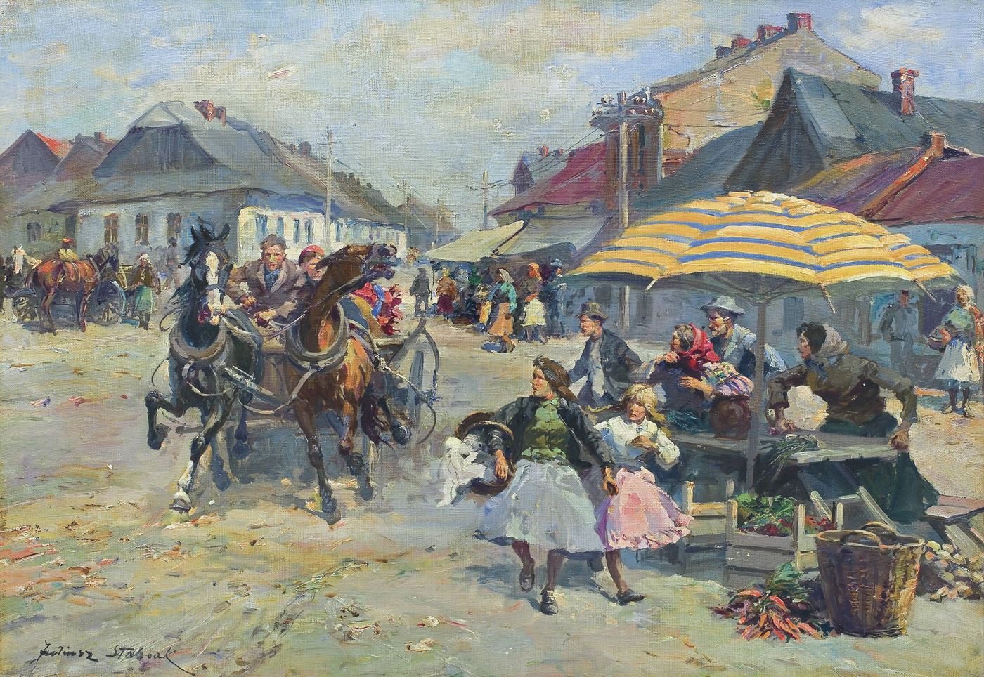 Juliusz Słabiak – malarz związany z Krakowem. Według przekazów, uczył się u Wojciecha Kossaka; wpływ nauczyciela jest wyraźnie widoczny w jego obrazach. Malował olejno i – rzadziej – akwarelą, tworząc pejzaże oraz rodzajowe sceny „krakowskie” – widoki wsi, różne sanny, wesela, jeźdźców w barwnych strojach – nawiązujące do malarstwa Kossaka dynamiczne kompozycje z końmi. Malował także widoki miejskie, szczególnie chętnie Rynek z Sukiennicami i kwiaciarki krakowskie.