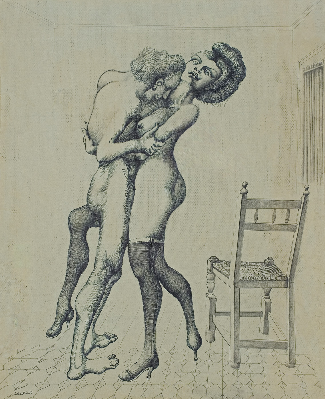 Jan Lebenstein (Brześć Litewski 1930 - Kraków 1999) w latach 1948-1954 studiował malarstwo w ASP w Warszawie pod kierunkiem prof. Eugeniusza Eibischa i Artura Nachta-Samborskiego. W 1955 wziął udział w wystawie w warszawskim Arsenale. Zaprzyjaźniony w czasie studiów z Mironem Białoszewskim, swą pierwszą wystawę indywidualną pokazał w 1956 w Teatrze na Tarczyńskiej. W 1959 zdobył Grand Prix de la Ville de Paris na I Biennale Młodych w Paryżu i w tym roku przeniósł się na stałe do Paryża. Po seriach "figur kreślonych" (na papierze milimetrowym) i "figur hieratycznych" z lat 1955-1958 maluje cykl "figur osiowych" (1958-1962), które wystawia w Paryżu i USA. Równolegle w 1960 zaczyna rysowane "karnety", rodzaj dziennika, który w przyszłości dostarczy motywów wykorzystanych w obrazach. W latach 1964-1965 maluje "Bestiarium", cykl fakturowych, archaizowanych stworów przypominających prehistoryczne wykopaliska. Bezpośrednio po nich wprowadza do swych obrazów postaci ludzkie i fantastyczne, odgrywające sceny ni to mitologiczne, ni to ze snu, często przesycone erotyką. W 1970 projektuje witraże dla Centre du Dialogue w Paryżu. W W 1971 otrzymuje obywatelstwo francuskie 1974 powstają gwasze inspirowane Folwarkiem zwierzęcym George'a Orwella. W latach 1976-1989 tworzy wyłącznie w technice gwaszu i pastelu, podejmując tematykę mitologiczną i zaczerpniętą z Biblii: cykle ilustracji do Księgi Hioba (wyd. 1979) i do Apokalipsy (wyd. 1986) w nowych przekładach Czesława Miłosza. W 1989 powraca do malarstwa olejnego (cykl "Pergamon"). Artysta otrzymał m. in. nagrodę Fundacji im. Alfreda Jurzykowskiego w 1976, Nagrodę Muzeum Archidiecezji Warszawskiej w 1985, Nagrodę im. Jana Cybisa w 1987.
